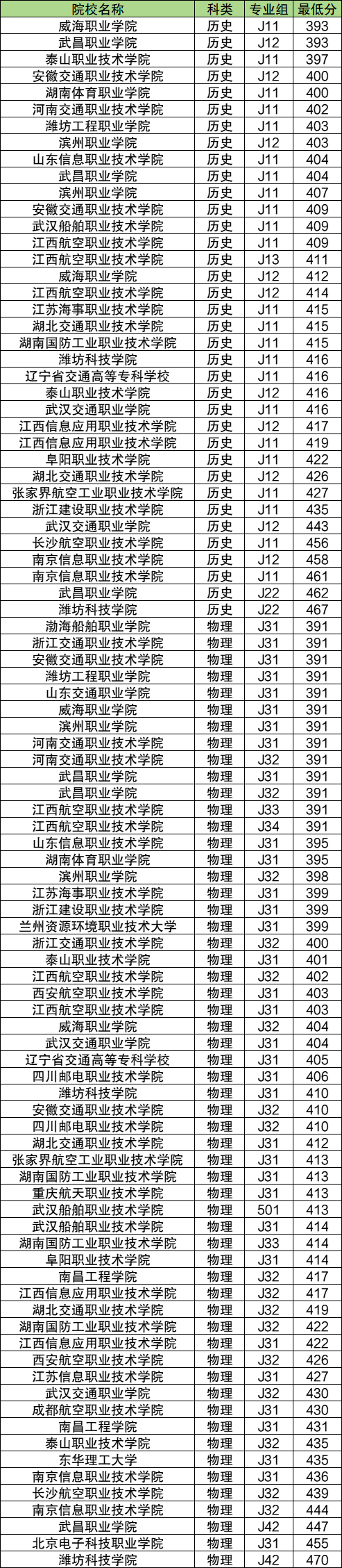 最低分393分对应的士官学校为威海职业学院(J11组)、武昌职业学院(J12组)。