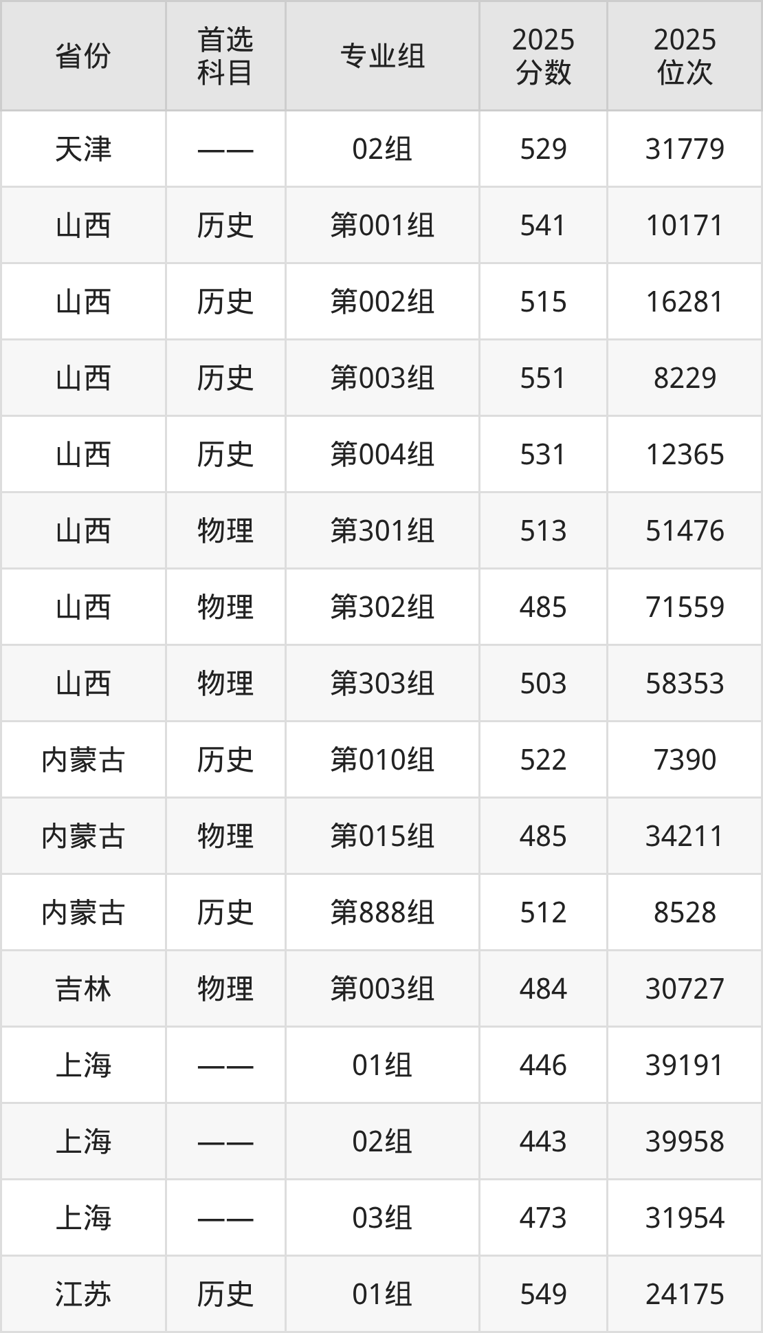 3.山西:历史类515分、16281位,物理类485分、71559位