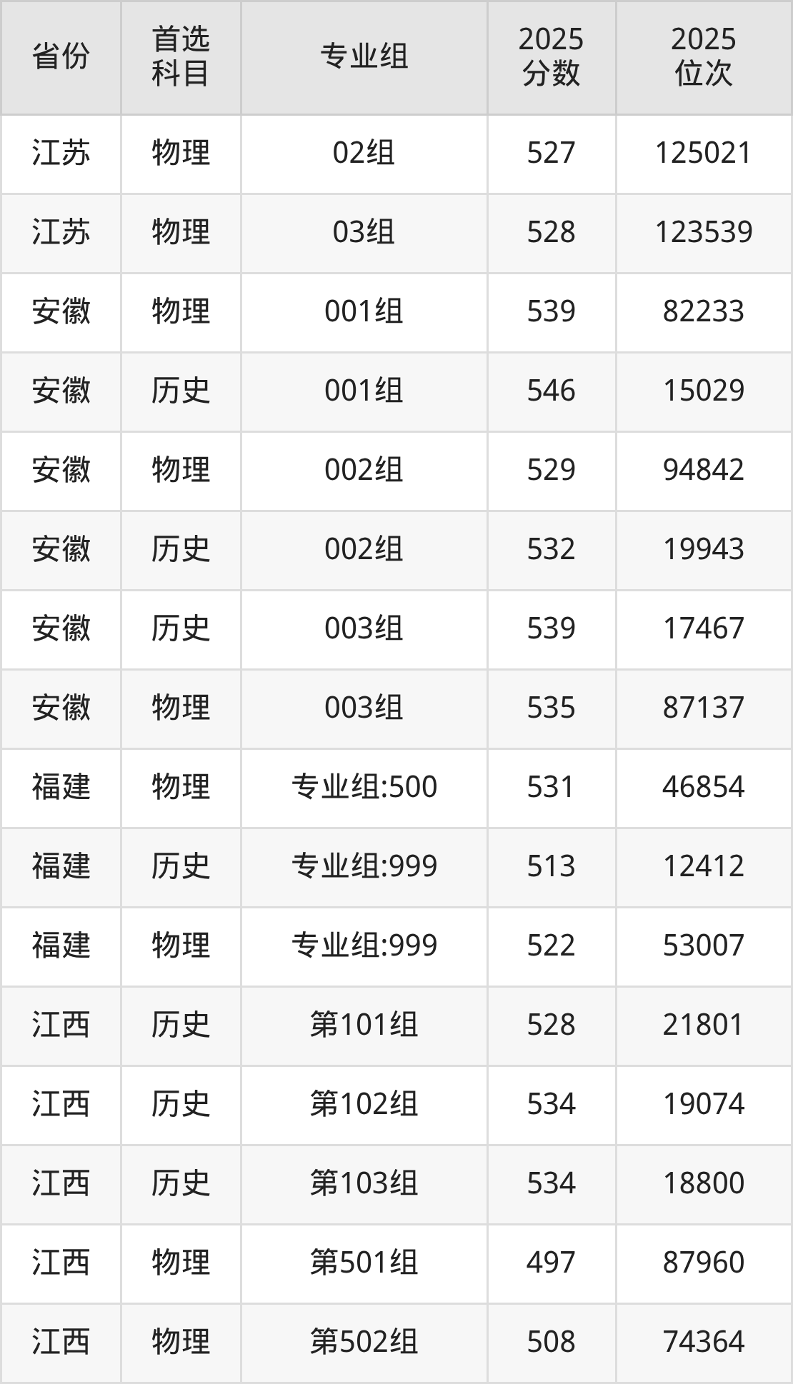 因为大部分地区目前只公布了院校(专业组)分数线,为了方便2026年考生参考,本文就整理出景德镇陶瓷大学在全国各省不同科类的最低分: