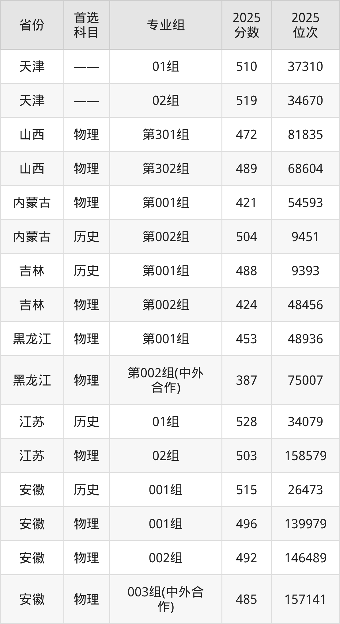 因为大部分地区目前只公布了院校(专业组)分数线,为了方便2026年考生参考,本文就整理出邯郸学院在全国各省不同科类的最低分: