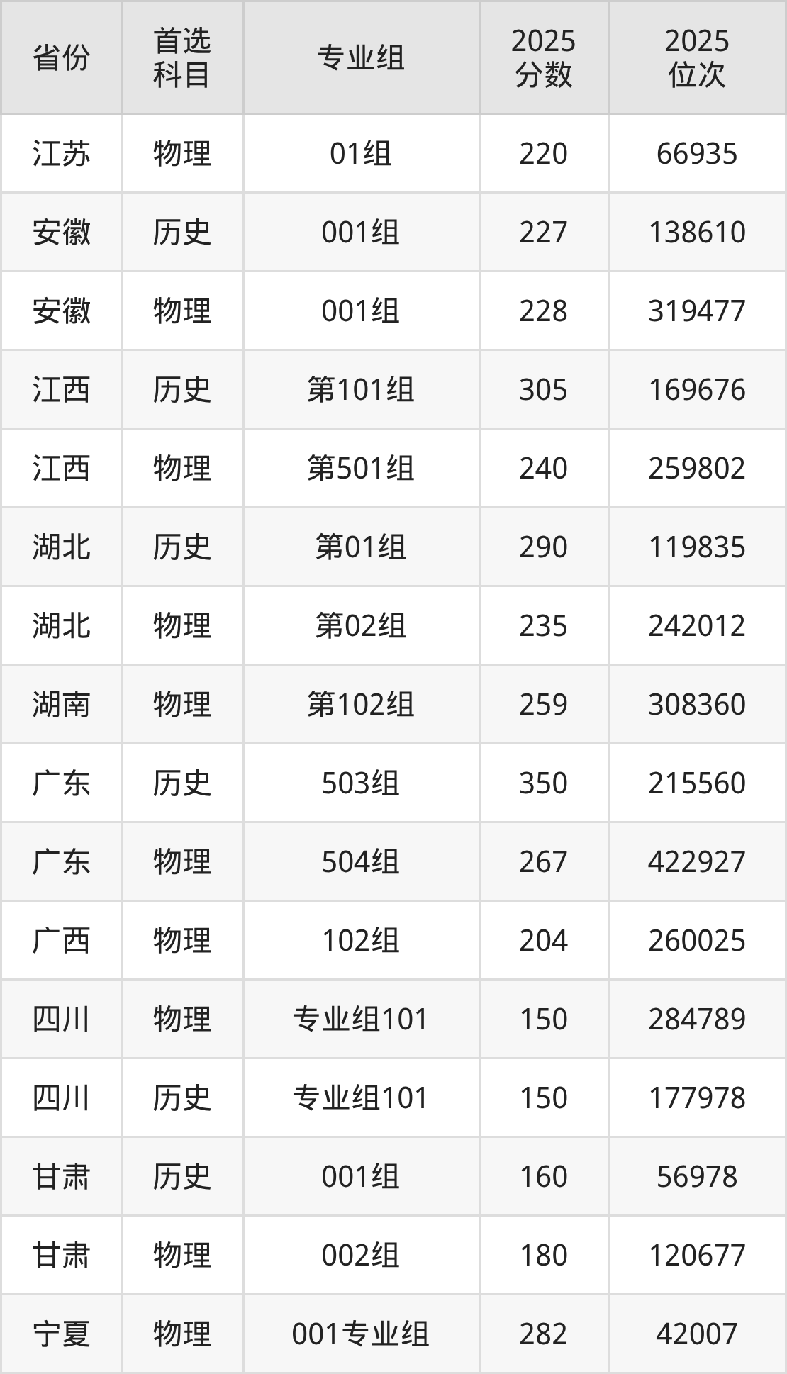 因为大部分地区目前只公布了院校(专业组)分数线,为了方便2026年考生参考,本文就整理出长江艺术工程职业学院在全国各省不同科类的最低分: