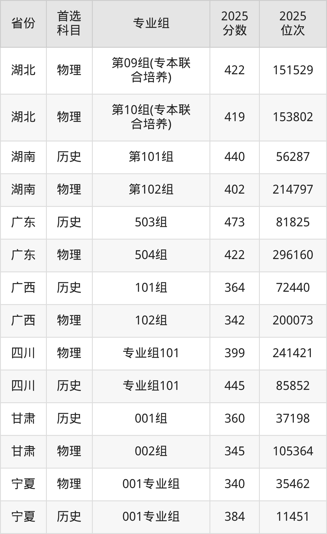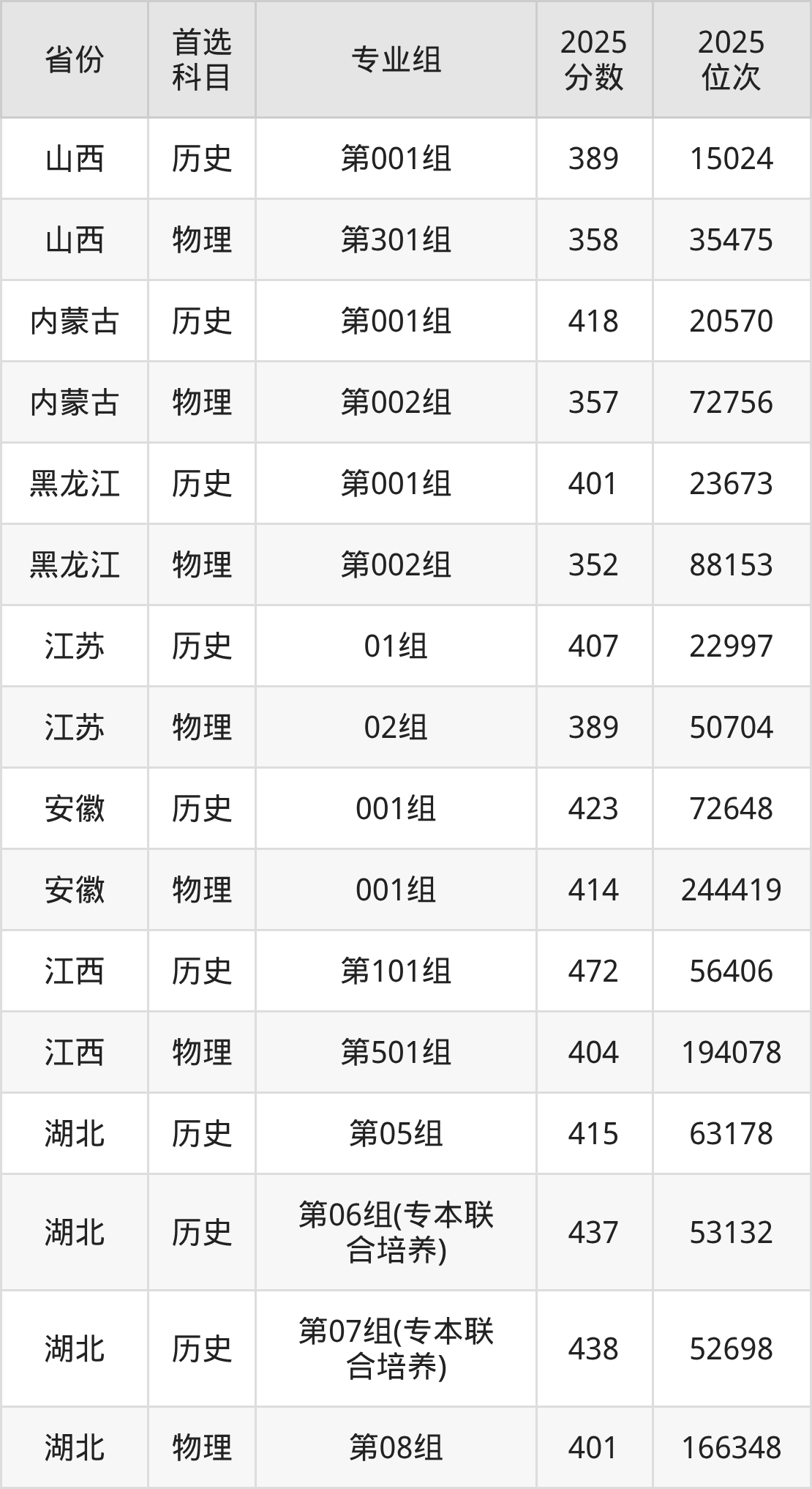 因为大部分地区目前只公布了院校(专业组)分数线,为了方便2026年考生参考,本文就整理出武汉警官职业学院在全国各省不同科类的最低分: