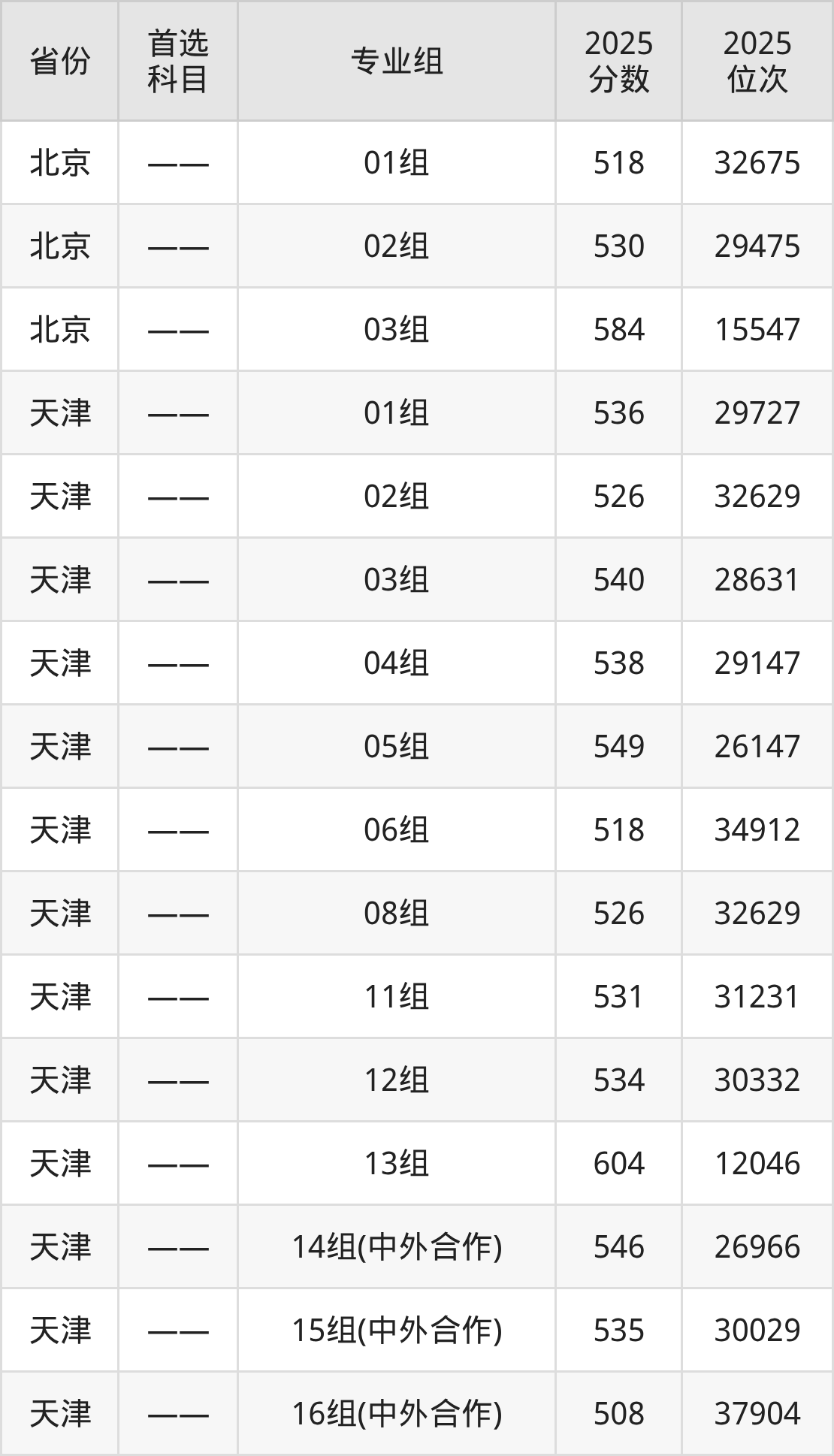 因为大部分地区目前只公布了院校(专业组)分数线,为了方便2026年考生参考,本文就整理出华北理工大学在全国各省不同科类的最低分: