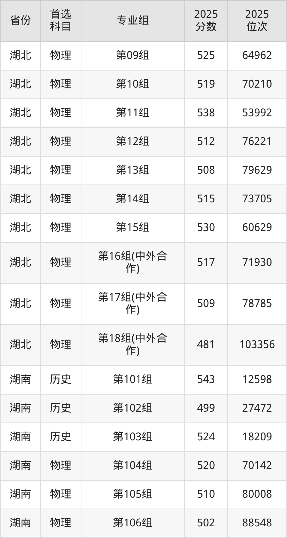 11.电气工程及其自动化(中外合作办学):555分、106005位