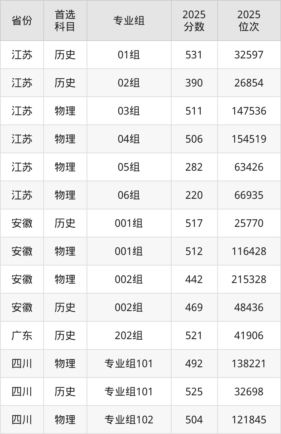 因为大部分地区目前只公布了院校(专业组)分数线,为了方便2026年考生参考,本文就整理出连云港师范学院在全国各省不同科类的最低分: