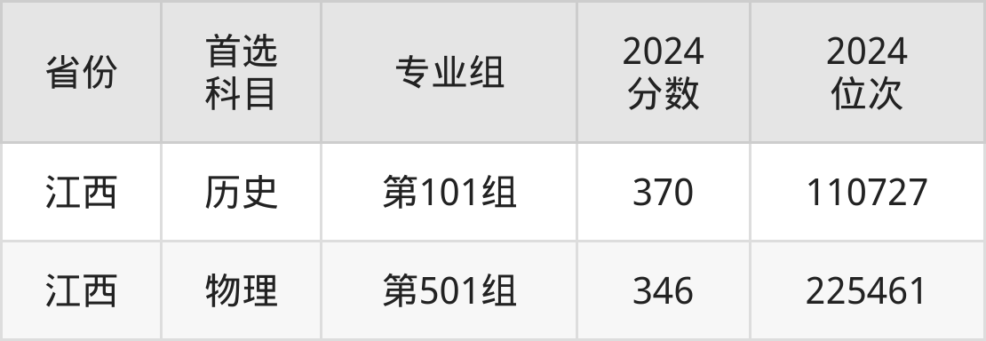 1.江西:物理类346分、225461位,历史类370分、110727位