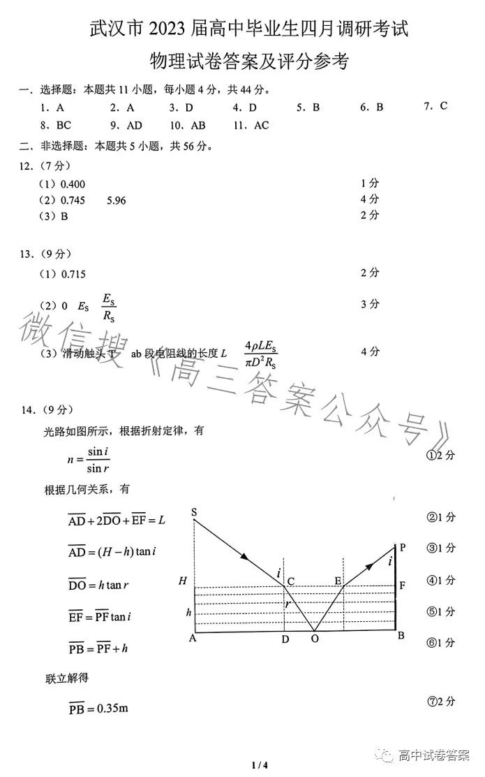 2023武汉高三四调其他科目试卷及答案解析汇总:https://www.gk100.com/read_873113993.htm(点击查看)
