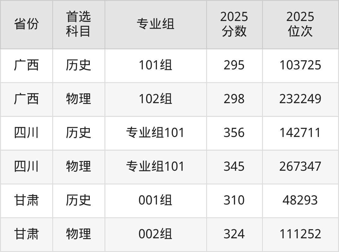 因为大部分地区目前只公布了院校(专业组)分数线,为了方便2026年考生参考,本文就整理出河南地矿职业学院在全国各省不同科类的最低分:
