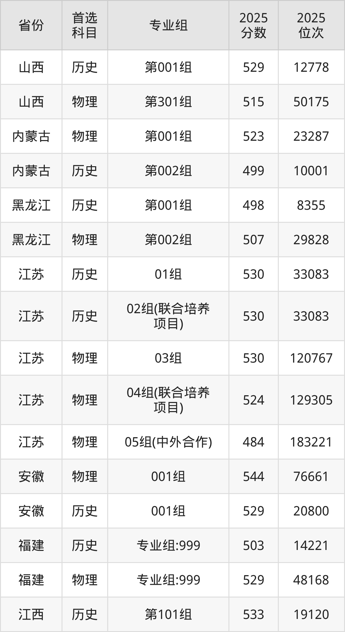 因为大部分地区目前只公布了院校(专业组)分数线,为了方便2026年考生参考,本文就整理出南京工业职业技术大学在全国各省不同科类的最低分: