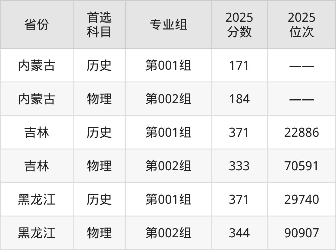 因为大部分地区目前只公布了院校(专业组)分数线,为了方便2026年考生参考,本文就整理出通辽职业学院在全国各省不同科类的最低分: