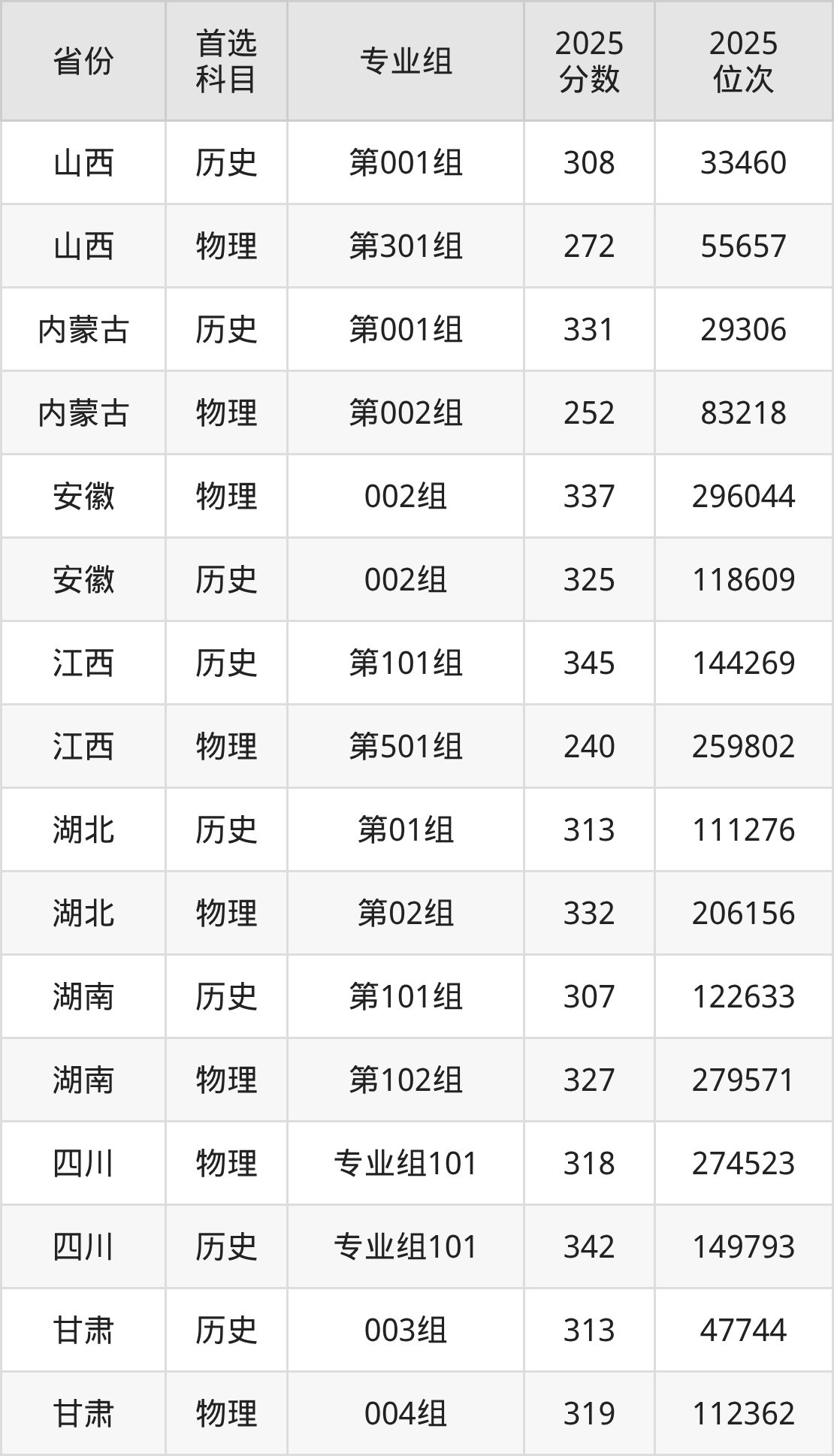 因为大部分地区目前只公布了院校(专业组)分数线,为了方便2026年考生参考,本文就整理出新疆石河子职业技术学院在全国各省不同科类的最低分:
