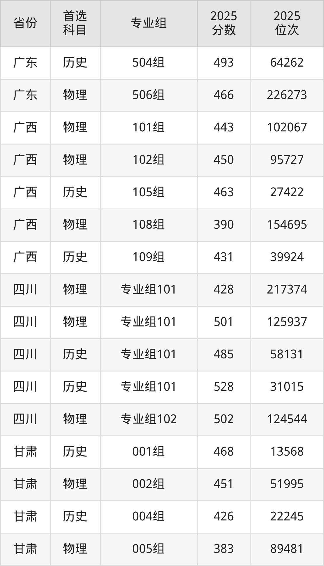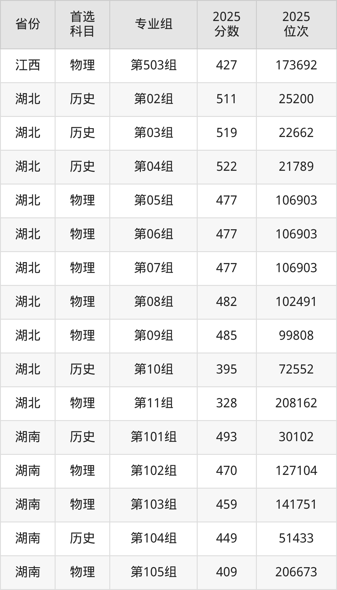 因为大部分地区目前只公布了院校(专业组)分数线,为了方便2026年考生参考,本文就整理出汉江师范学院在全国各省不同科类的最低分: