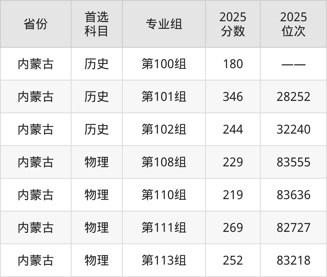 2.内蒙古:历史类180分,物理类219分、83636位