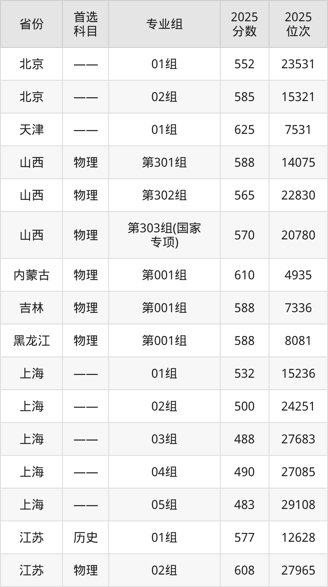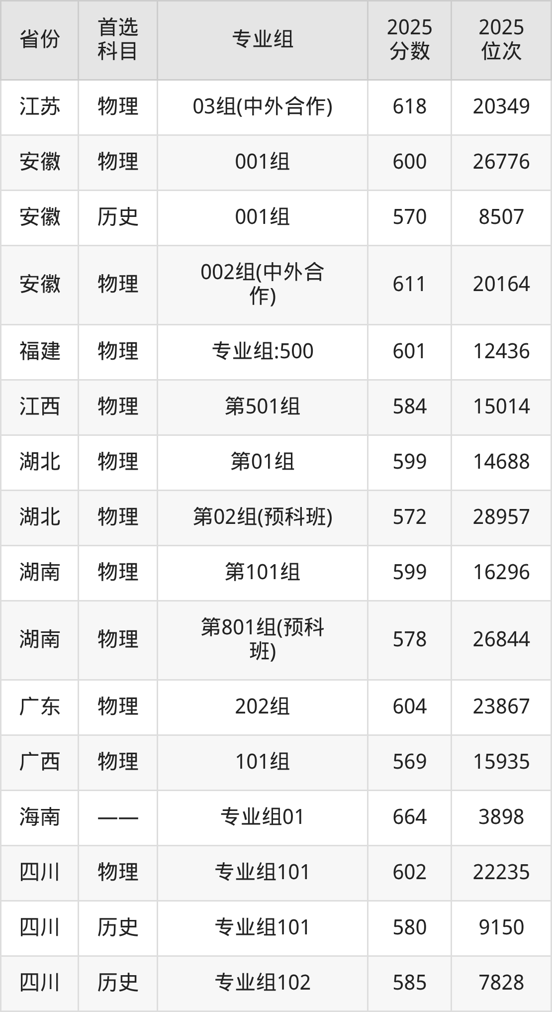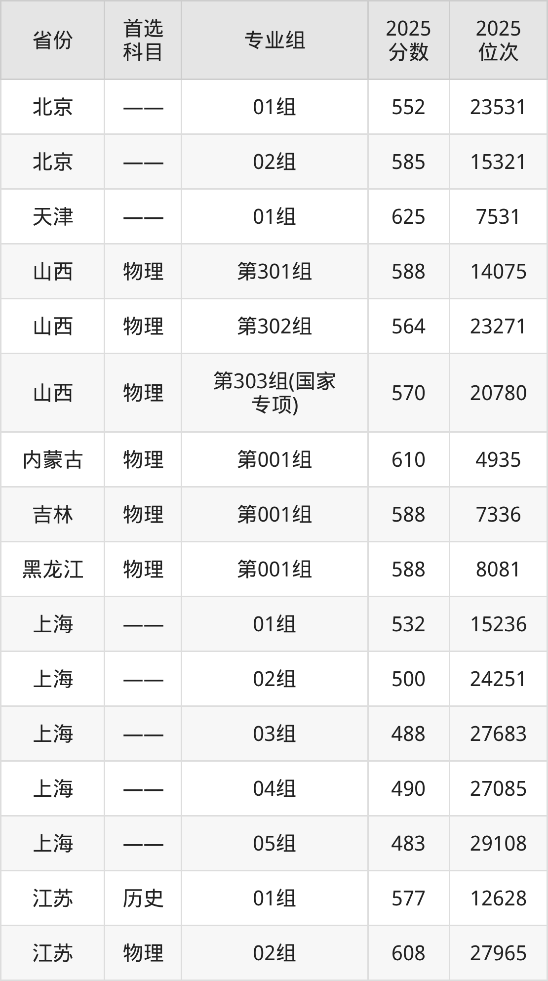 因为大部分地区目前只公布了院校(专业组)分数线,为了方便2026年考生参考,本文就整理出上海电力大学在全国各省不同科类的最低分: