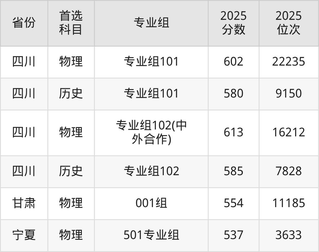 23.四川:历史类580分、9150位,物理类602分、22235位
