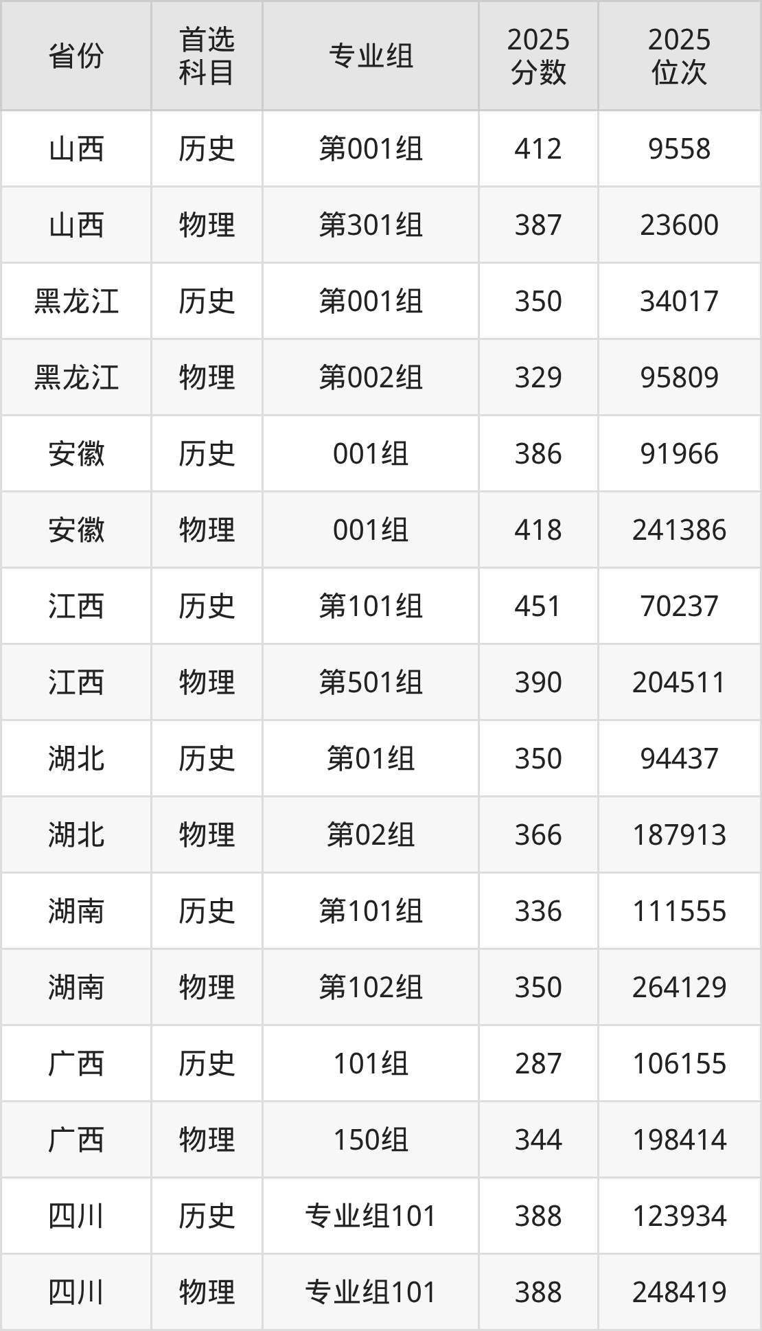 因为大部分地区目前只公布了院校(专业组)分数线,为了方便2026年考生参考,本文就整理出陕西机电职业技术学院在全国各省不同科类的最低分: