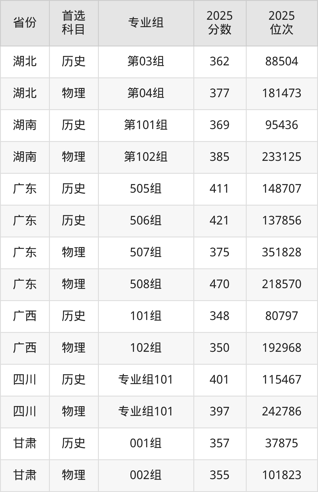 因为大部分地区目前只公布了院校(专业组)分数线,为了方便2026年考生参考,本文就整理出青岛港湾职业技术学院在全国各省不同科类的最低分: