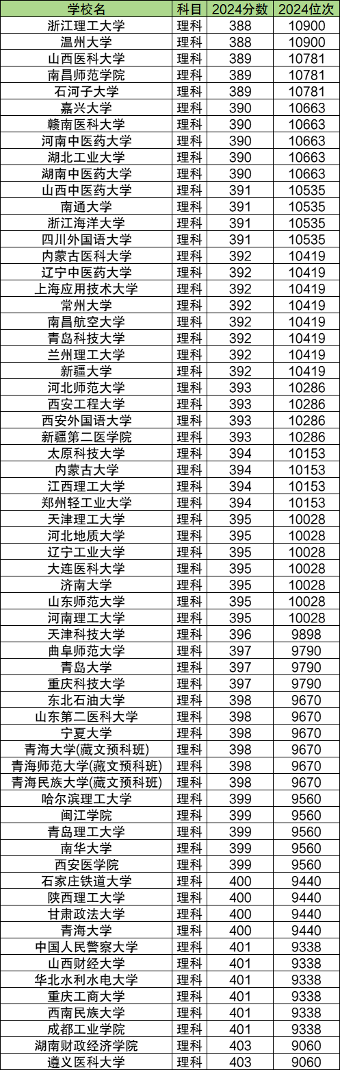 位次在10000左右的基本属于211或省重点院校,分数在388-403分之间,比一本线高45-60分之间。其中位次相对靠后的有浙江理工大学、温州大学、山西医科大学、南昌师范学院、石河子大学。