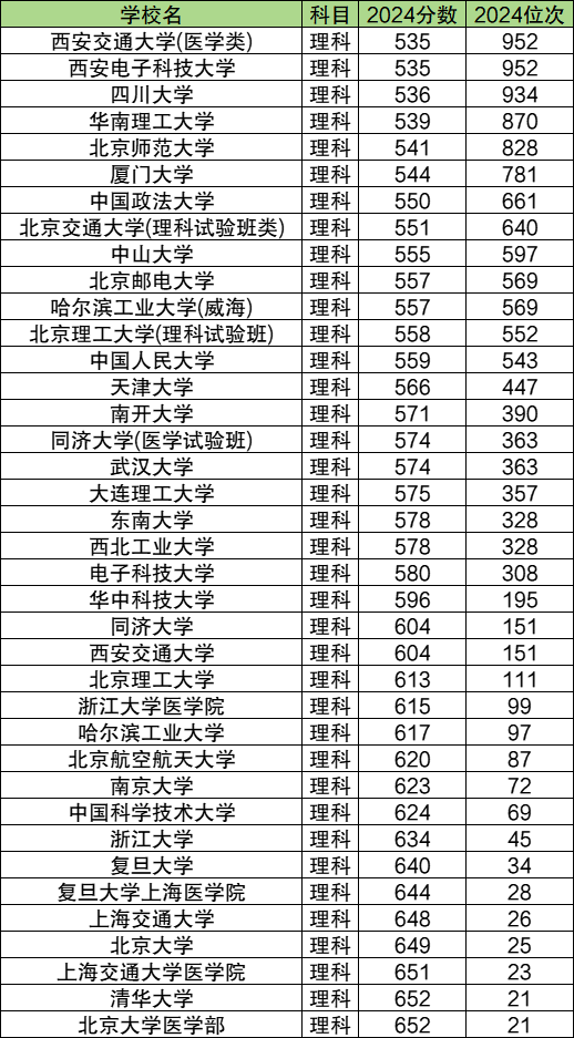 位次在1000以内的院校共有35个,能读的基本都是顶尖985院校,其中较为好考的有西安交通大学(医学类)、西安电子科技大学、四川大学,这些院校的分数在535-536分之间,位次在934以内。