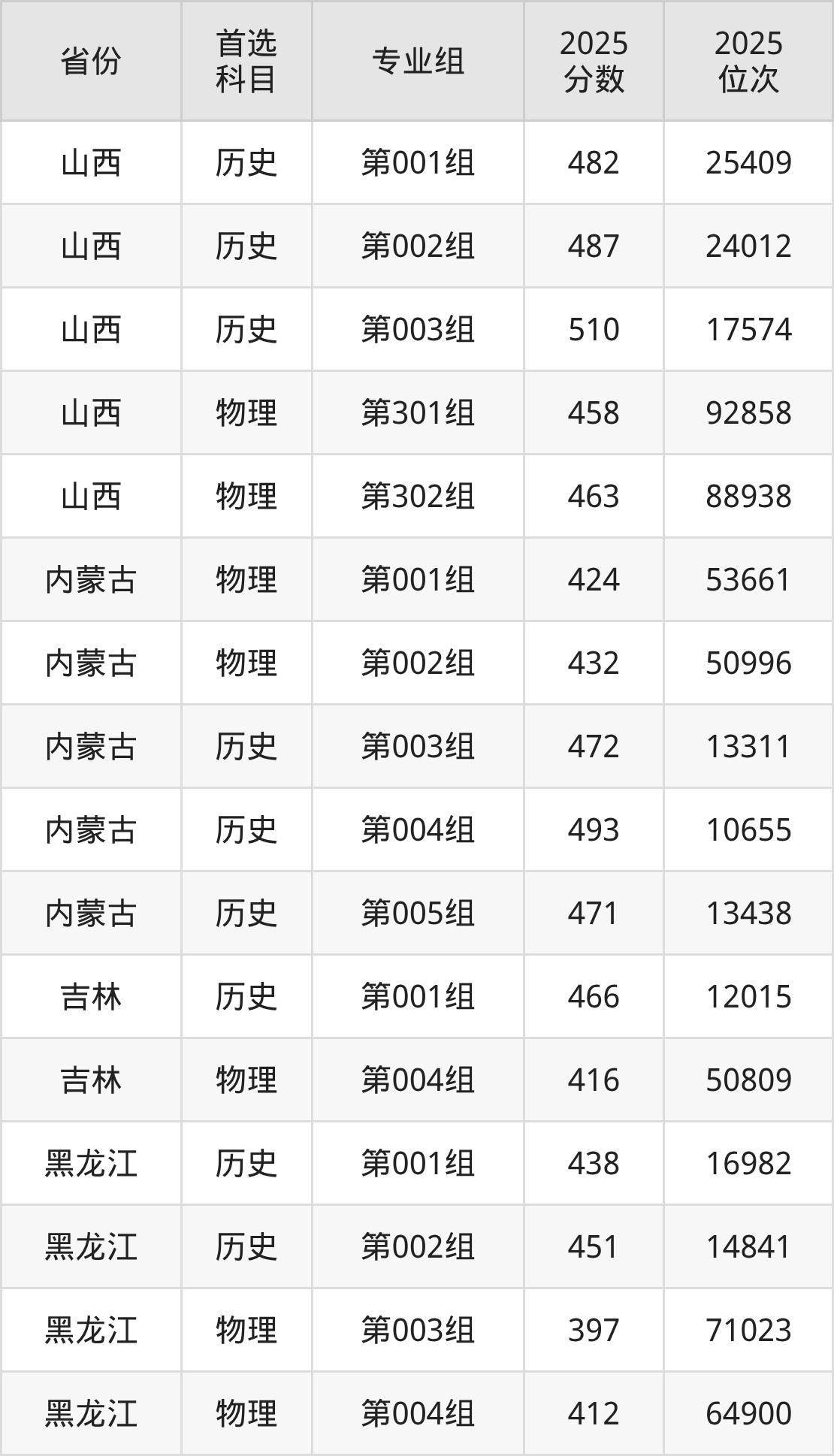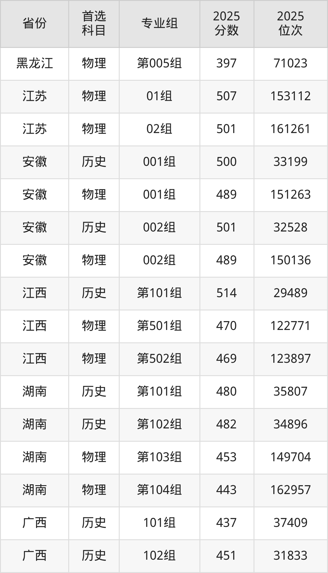 因为大部分地区目前只公布了院校(专业组)分数线,为了方便2026年考生参考,本文就整理出黑龙江工业学院在全国各省不同科类的最低分: