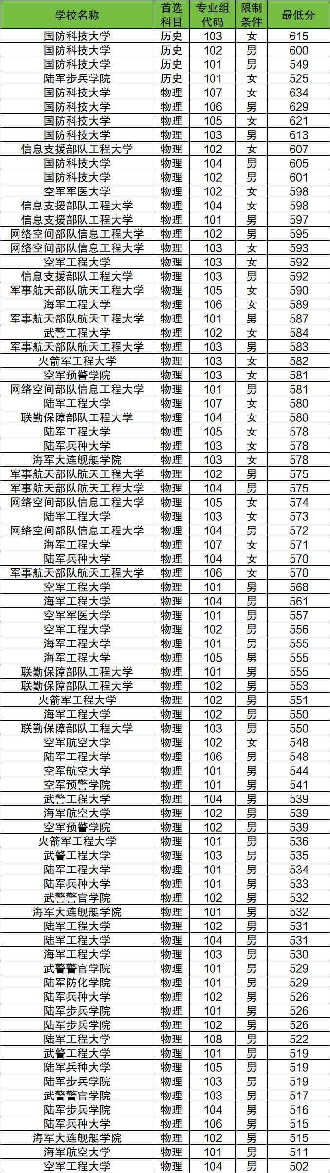 目前陕西省暂未公布所有军校的完整录取分数线表,待本网收集整理后,将及时为大家更新于此。