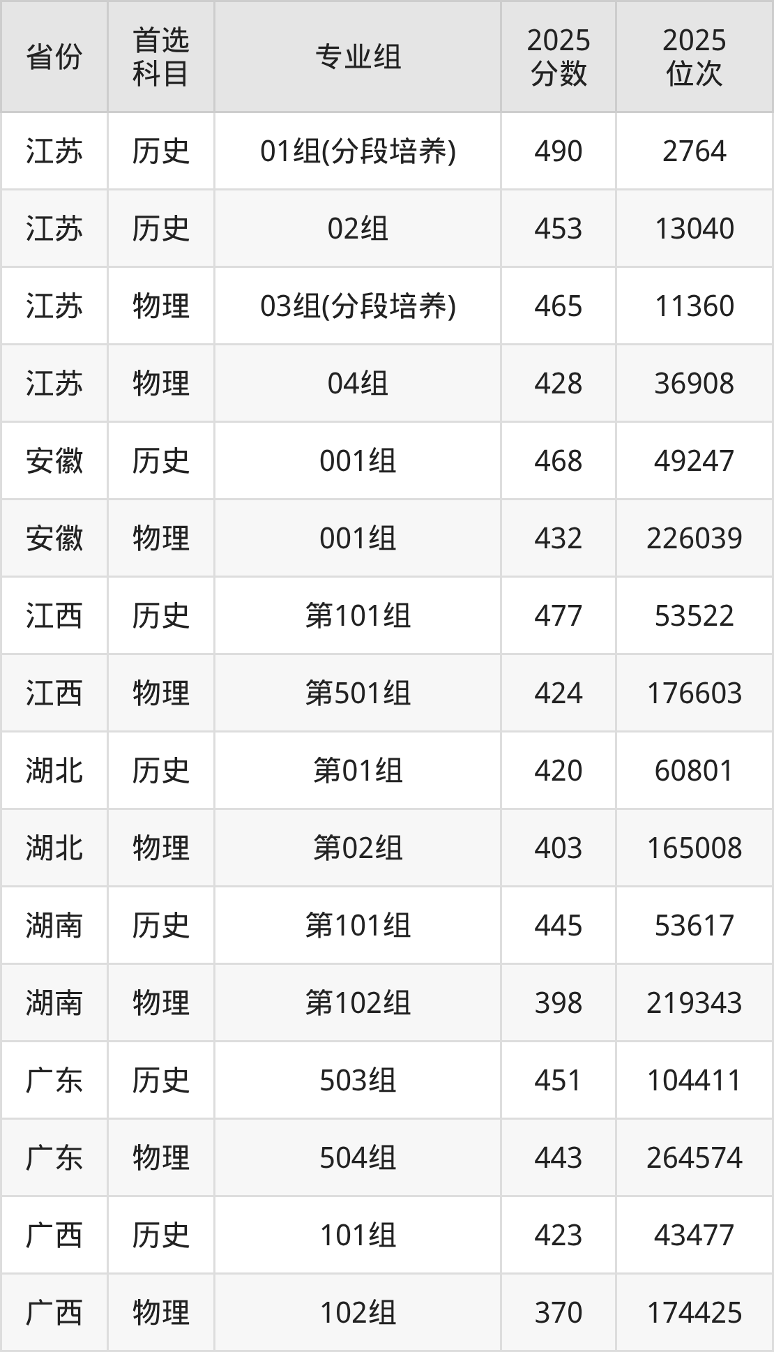因为大部分地区目前只公布了院校(专业组)分数线,为了方便2026年考生参考,本文就整理出苏州农业职业技术学院在全国各省不同科类的最低分: