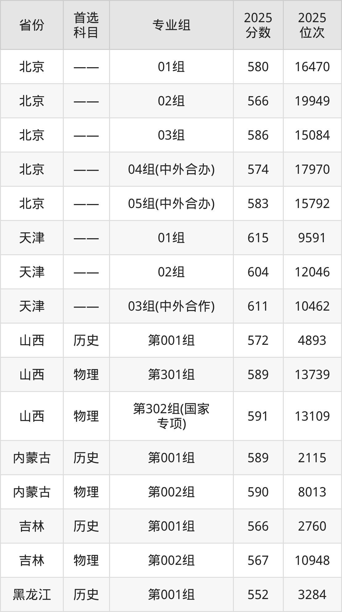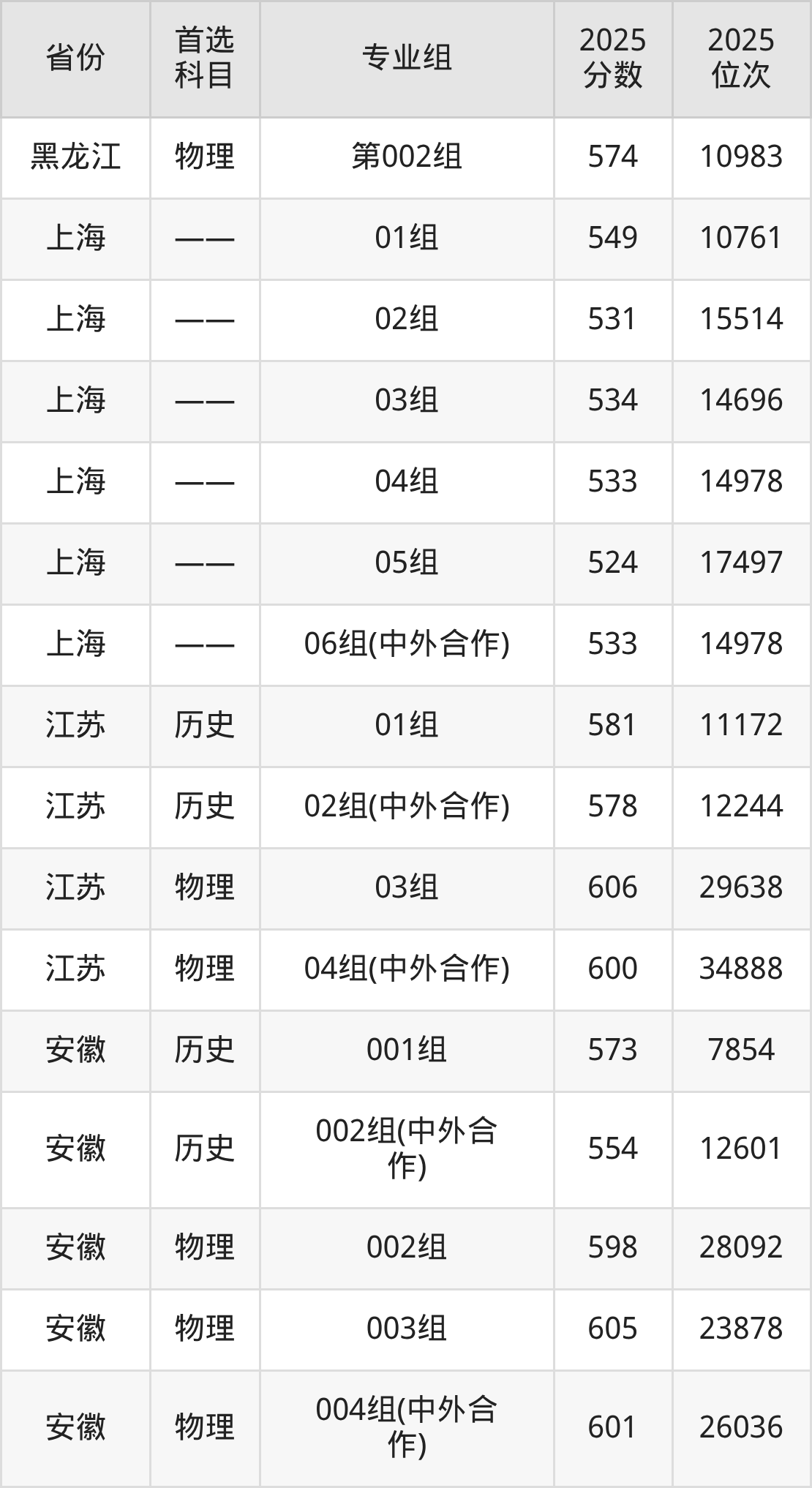 因为大部分地区目前只公布了院校(专业组)分数线,为了方便2026年考生参考,本文就整理出上海理工大学在全国各省不同科类的最低分: