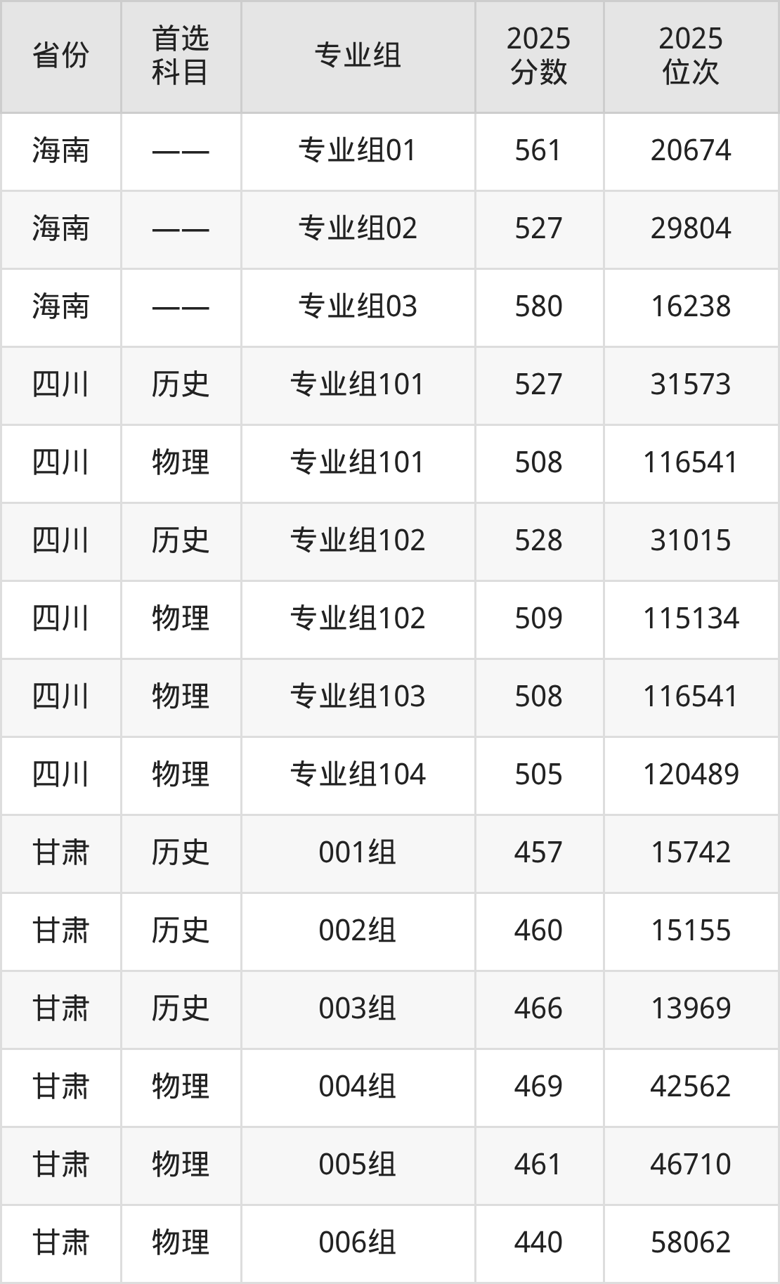 因为大部分地区目前只公布了院校(专业组)分数线,为了方便2026年考生参考,本文就整理出安顺学院在全国各省不同科类的最低分: