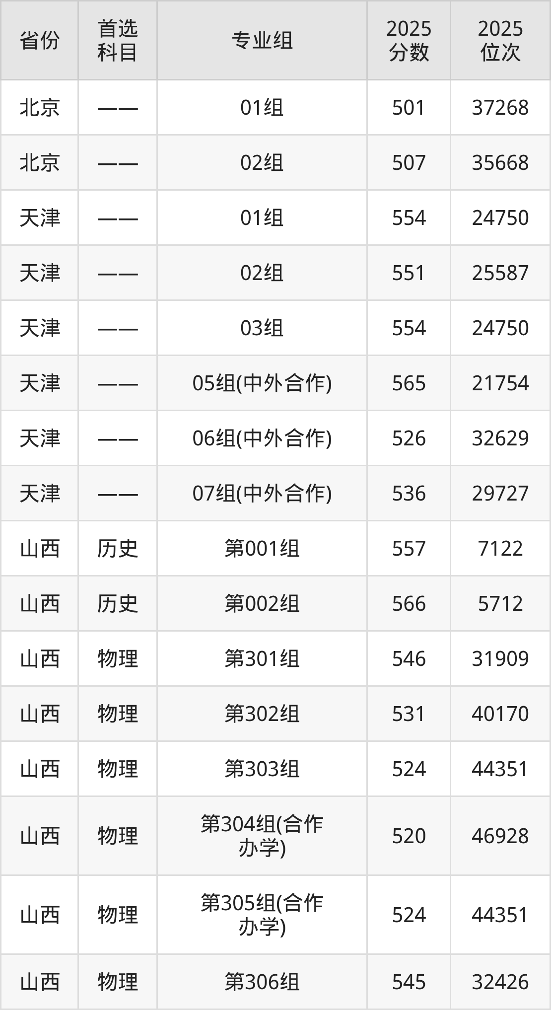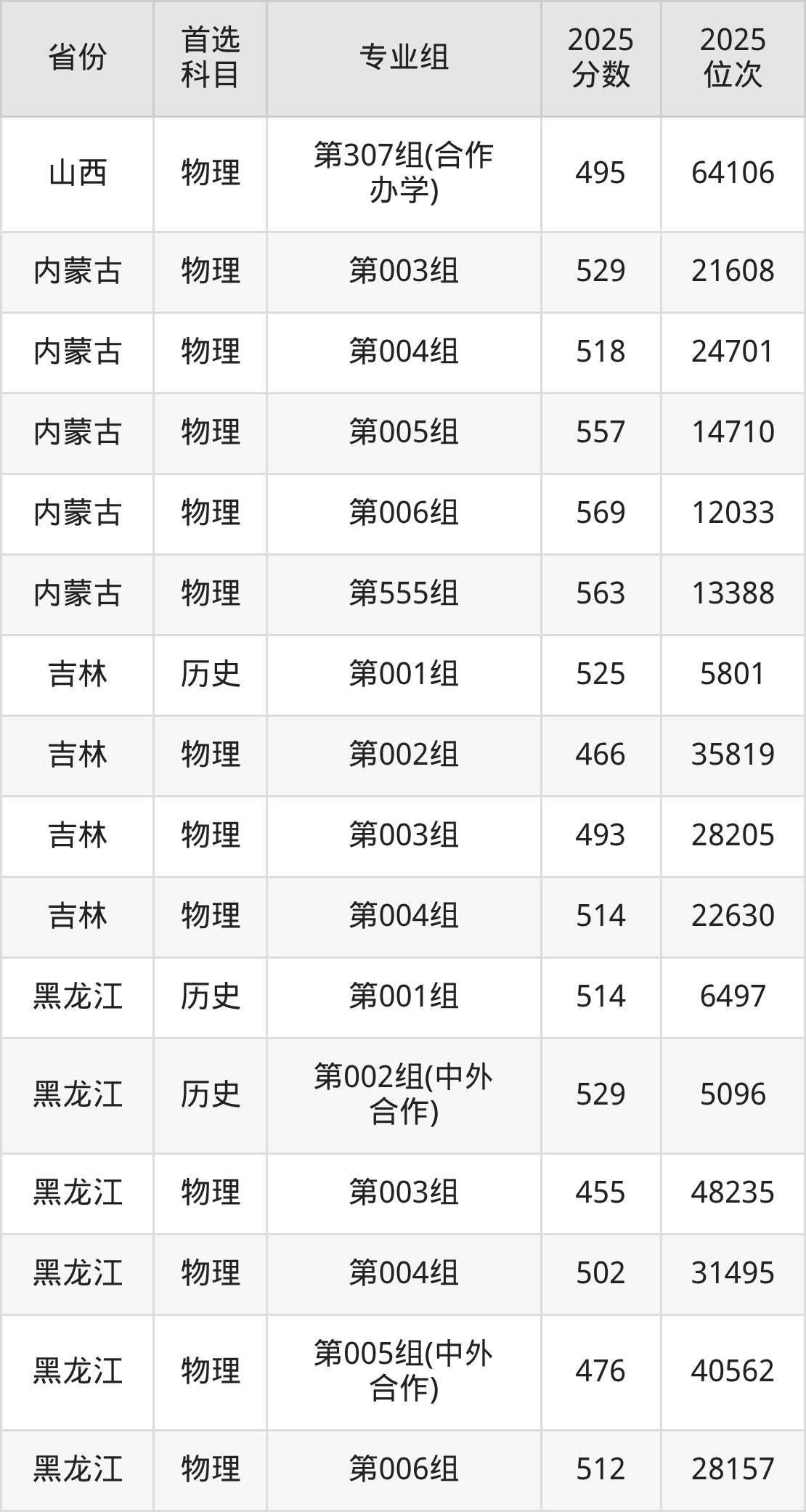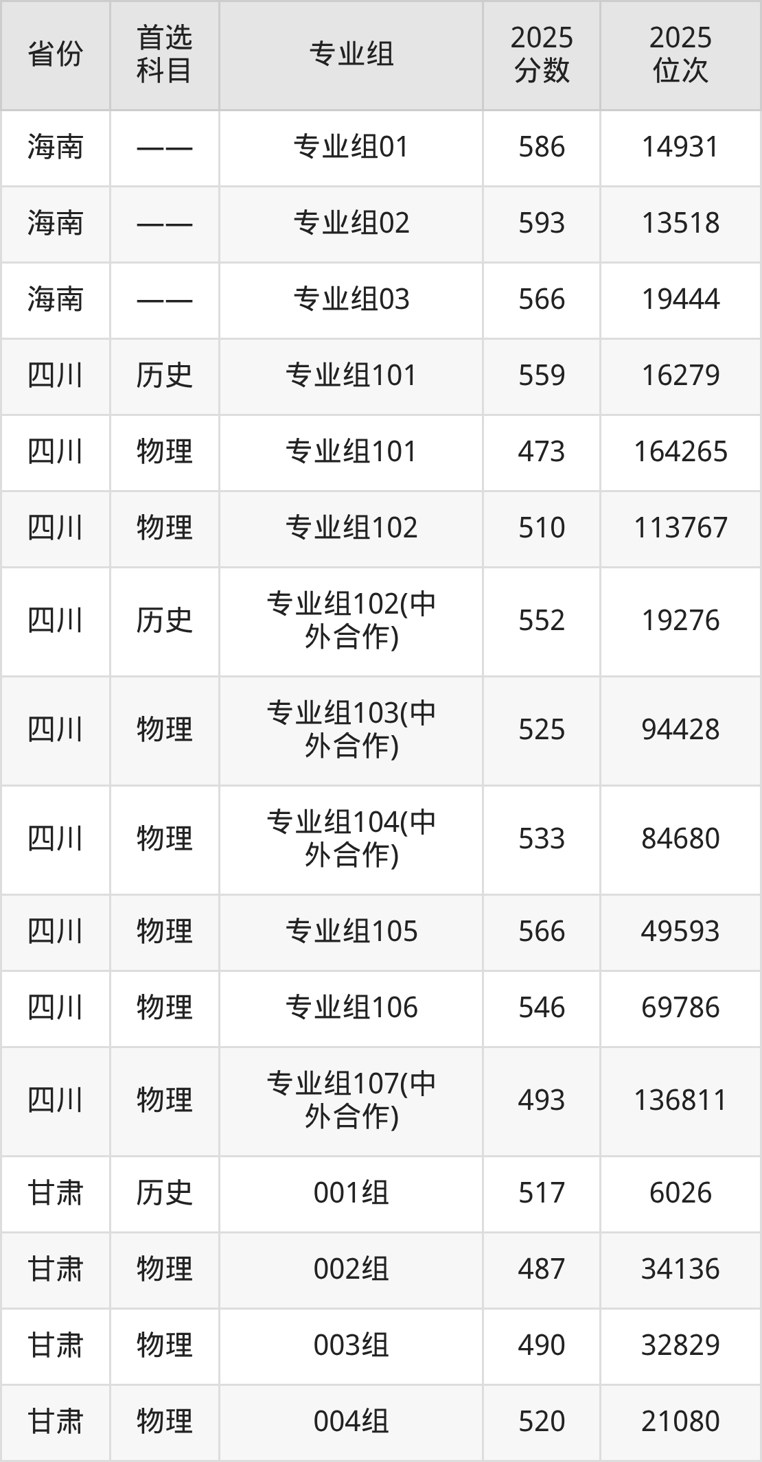 因为大部分地区目前只公布了院校(专业组)分数线,为了方便2026年考生参考,本文就整理出青岛理工大学在全国各省不同科类的最低分: