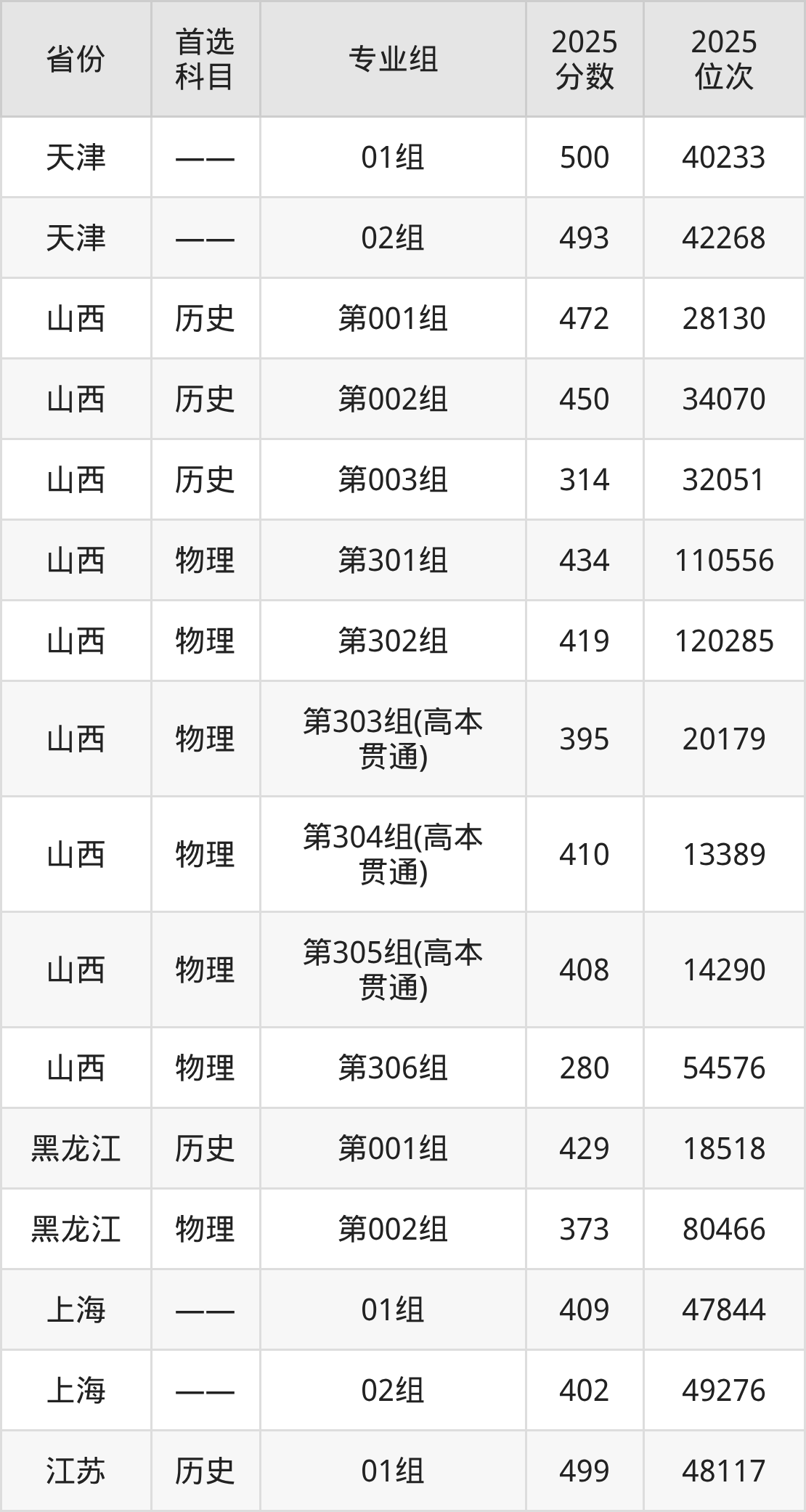 因为大部分地区目前只公布了院校(专业组)分数线,为了方便2026年考生参考,本文就整理出运城职业技术大学在全国各省不同科类的最低分:
