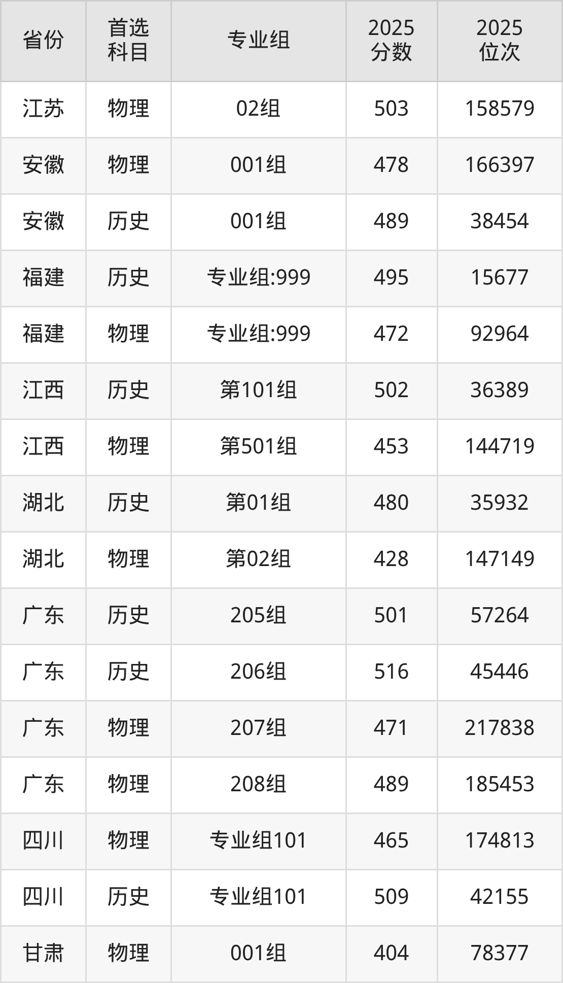 13.广东:历史类501分、57264位,物理类471分、217838位