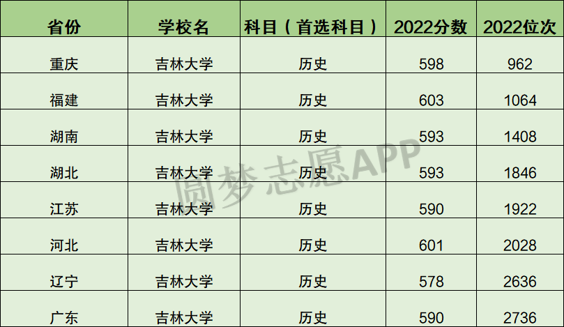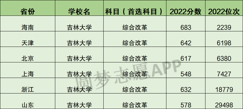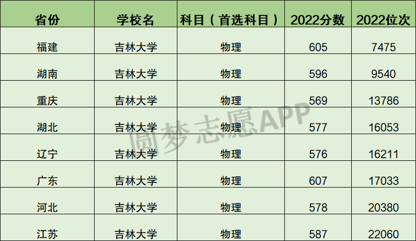 以下为2022年吉林大学全国各地录取分数线及位次,以供参考。