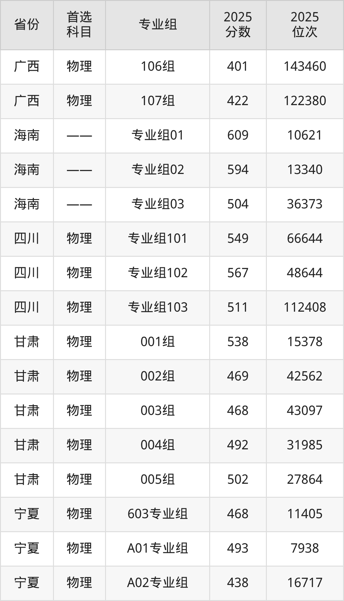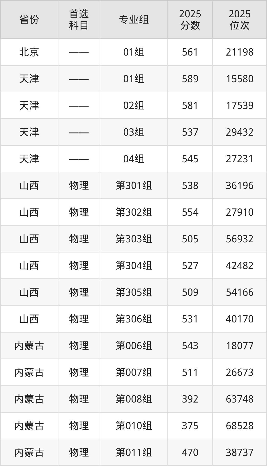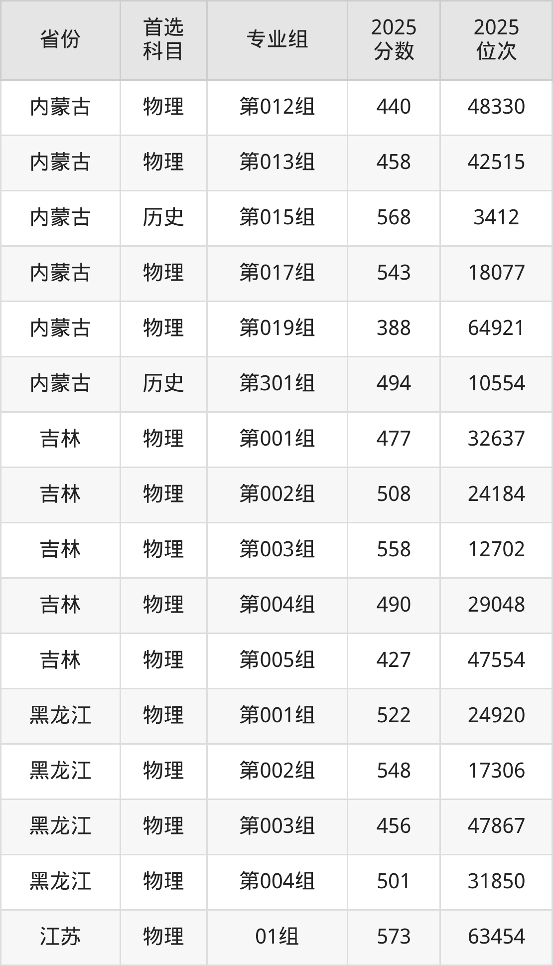 因为大部分地区目前只公布了院校(专业组)分数线,为了方便2026年考生参考,本文就整理出内蒙古医科大学在全国各省不同科类的最低分: