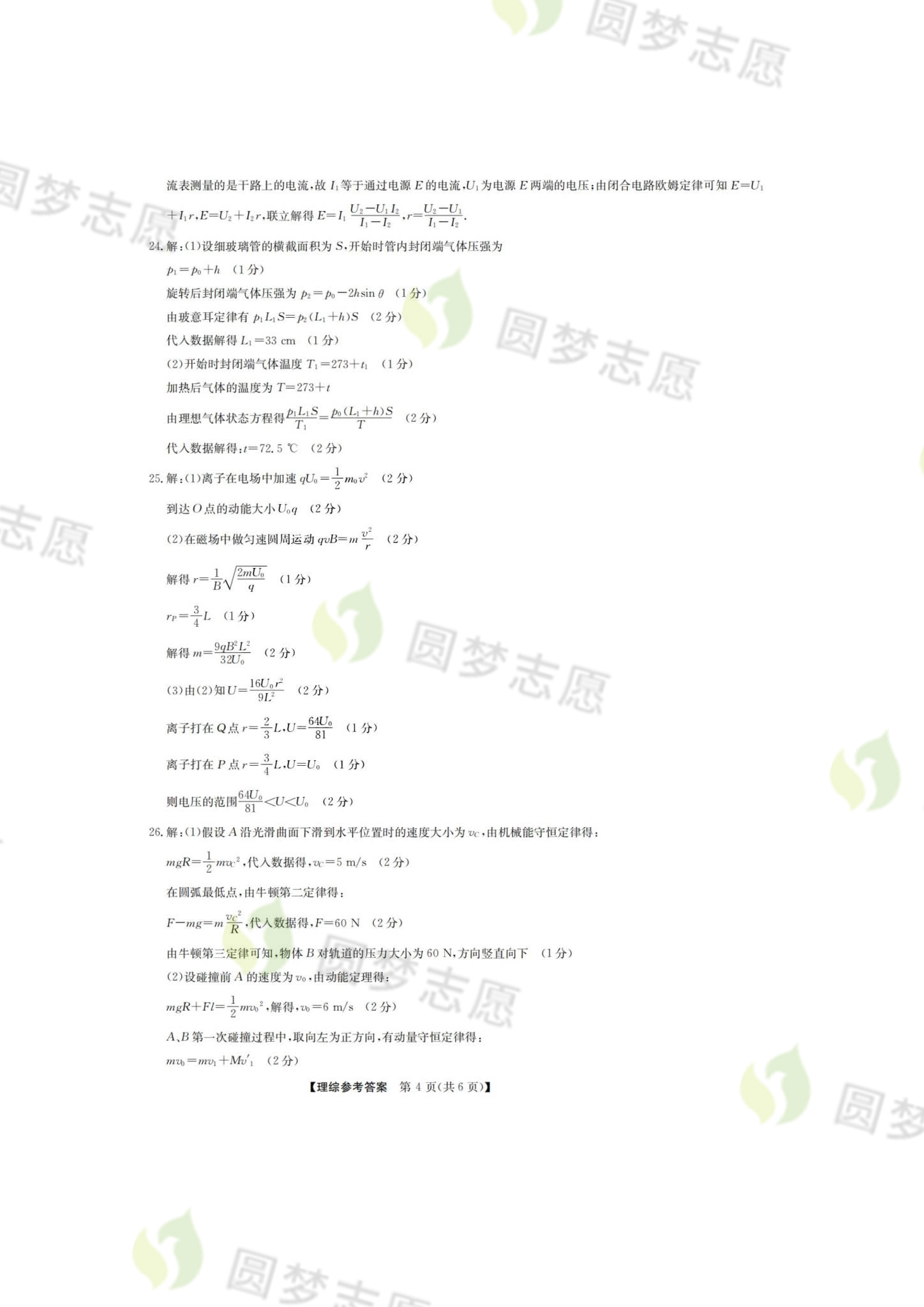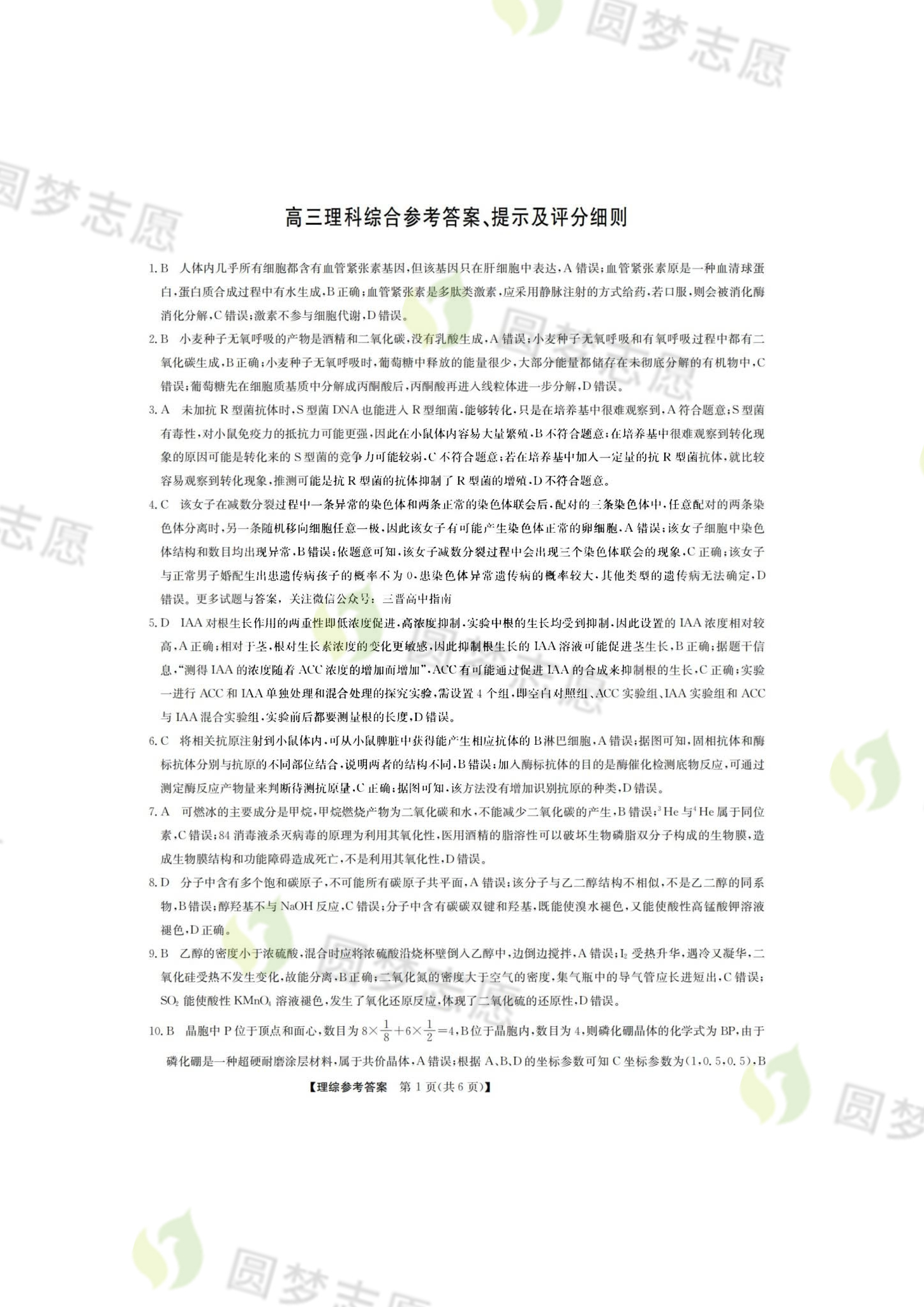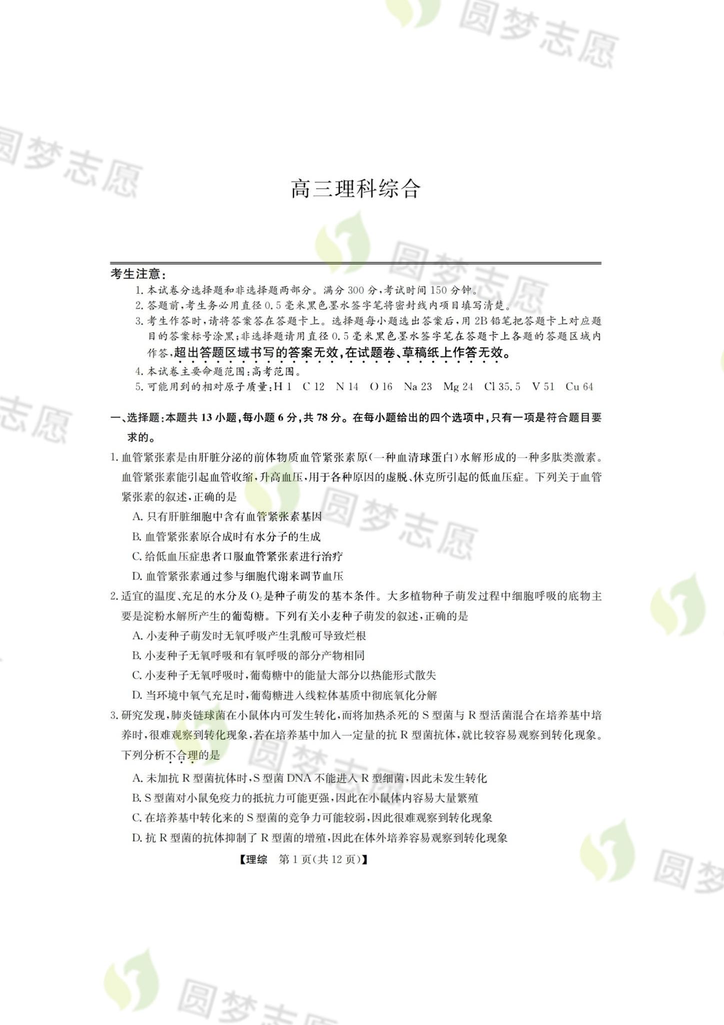 四、山西九师联盟2023高三1月第一次联考理科综合试题及答案