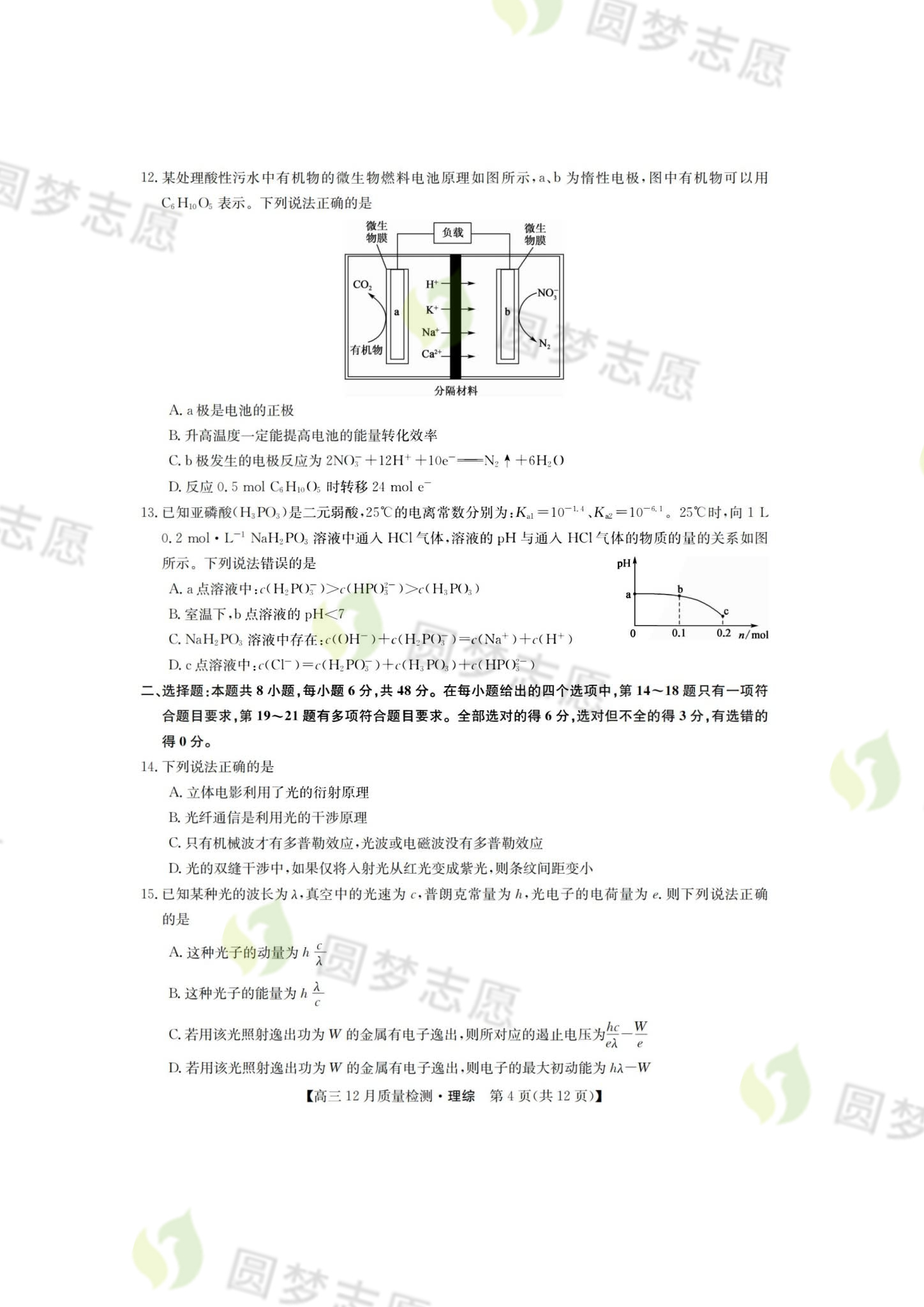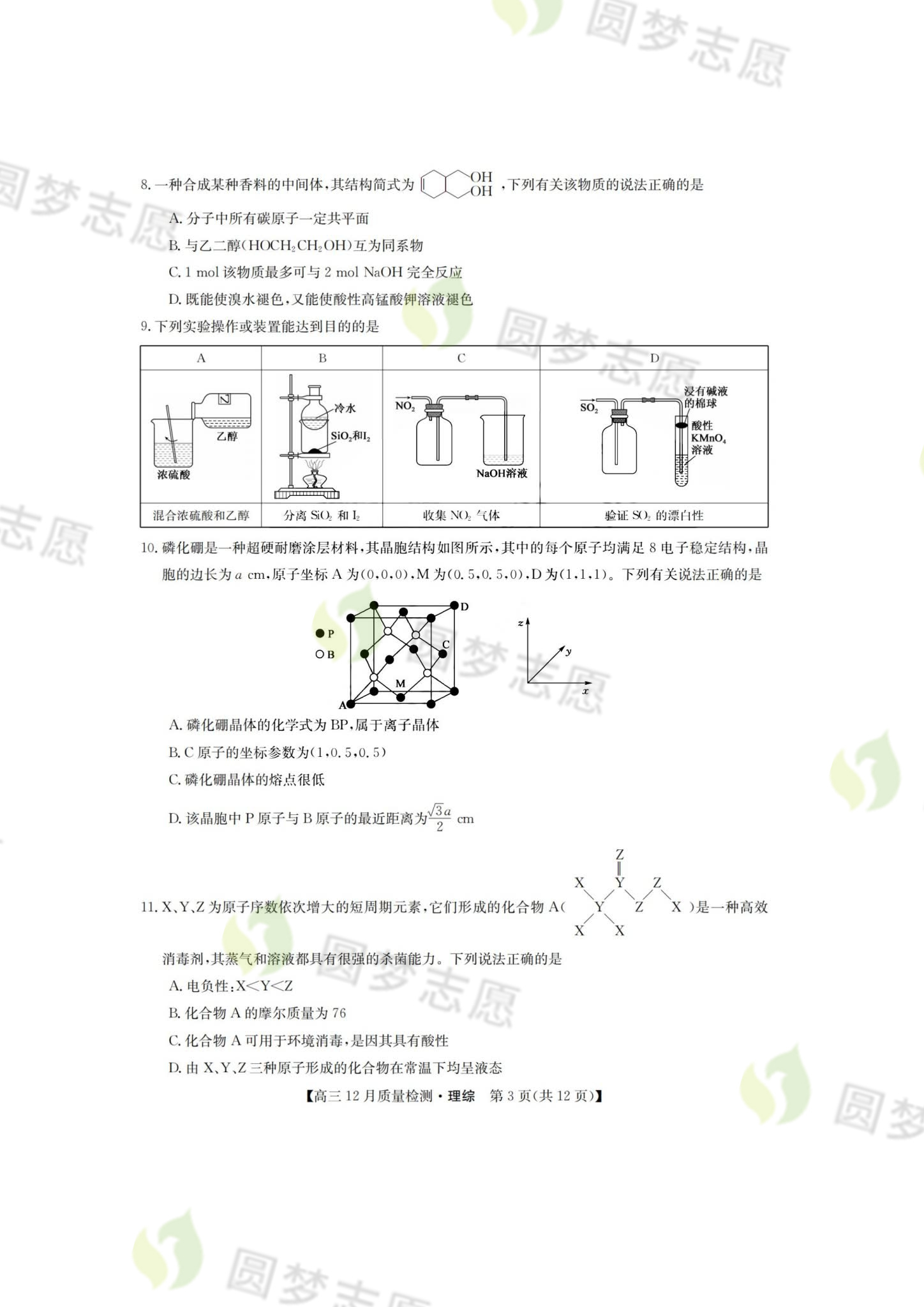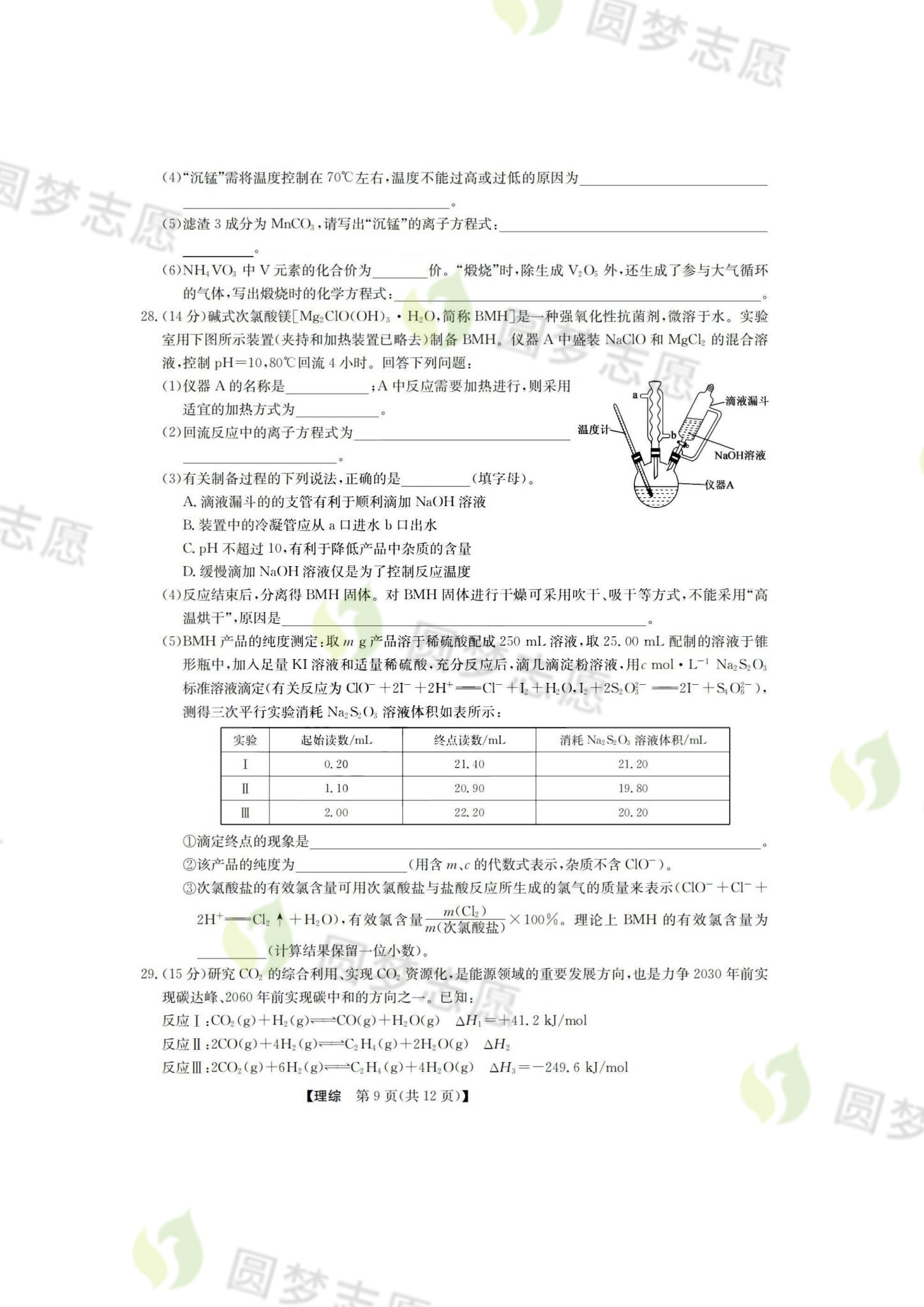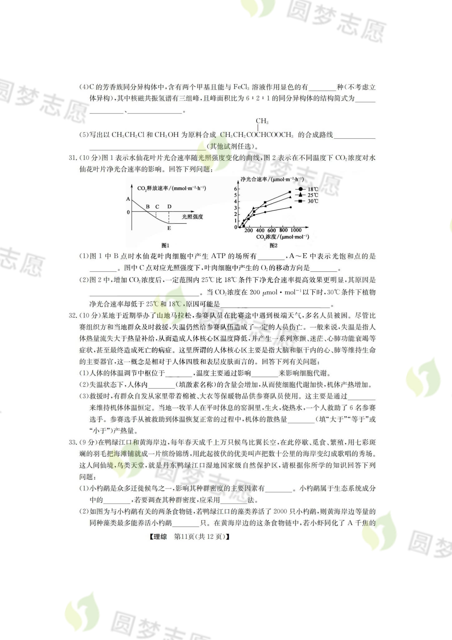 四、山西九师联盟2023高三1月第一次联考理科综合试题及答案