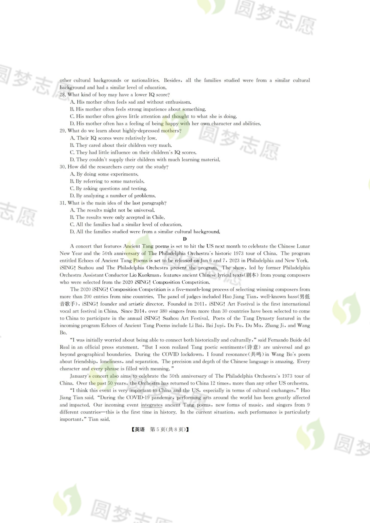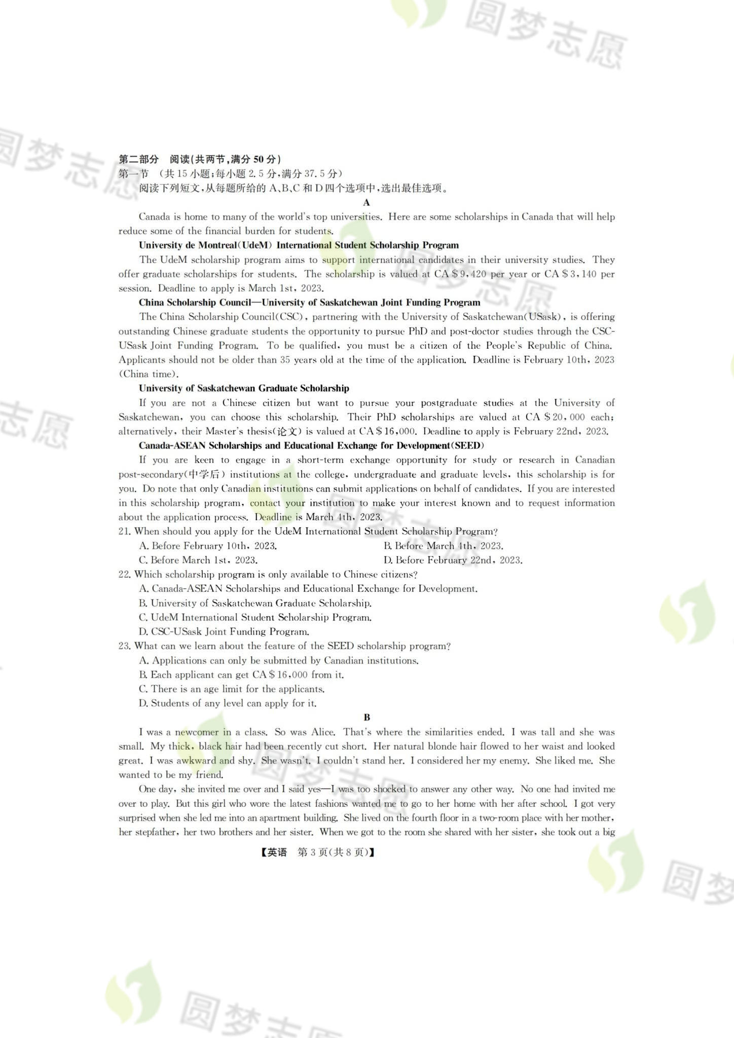 温馨提示:高三各地的联考都非常具有参考价值,特别是大型考试,试题含金量都非常高。大家还可以扫描上方二维码,添加2023年【圆梦志愿学习资料交流群】,备注自己需要的试题,群内将会第一时间为大家发布最新各地试题及答案资料,供大家下载参考!