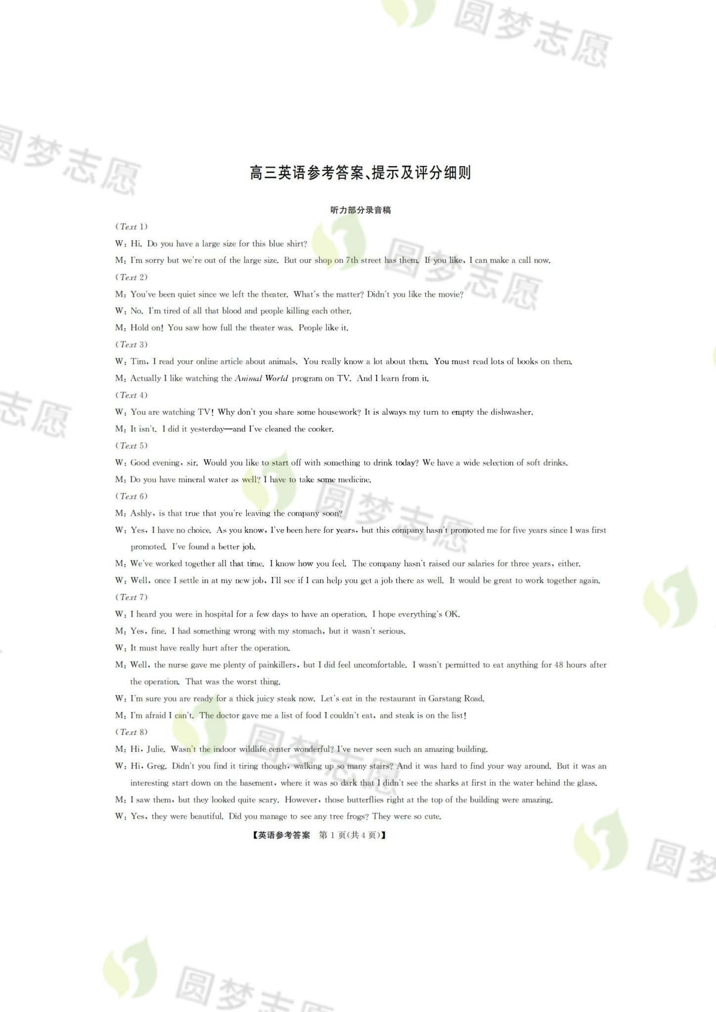 三、山西九师联盟2023高三1月第一次联考英语试题及答案