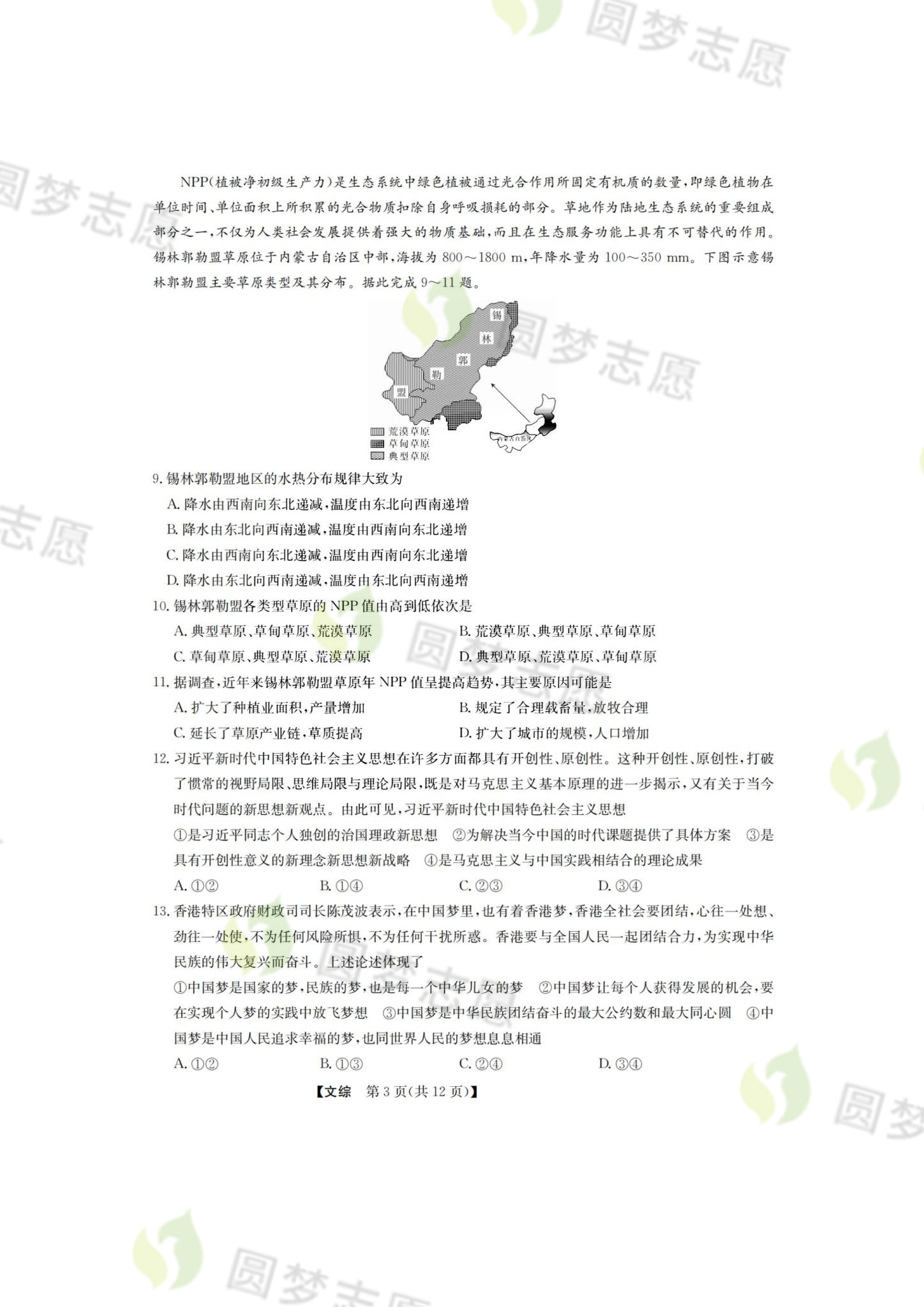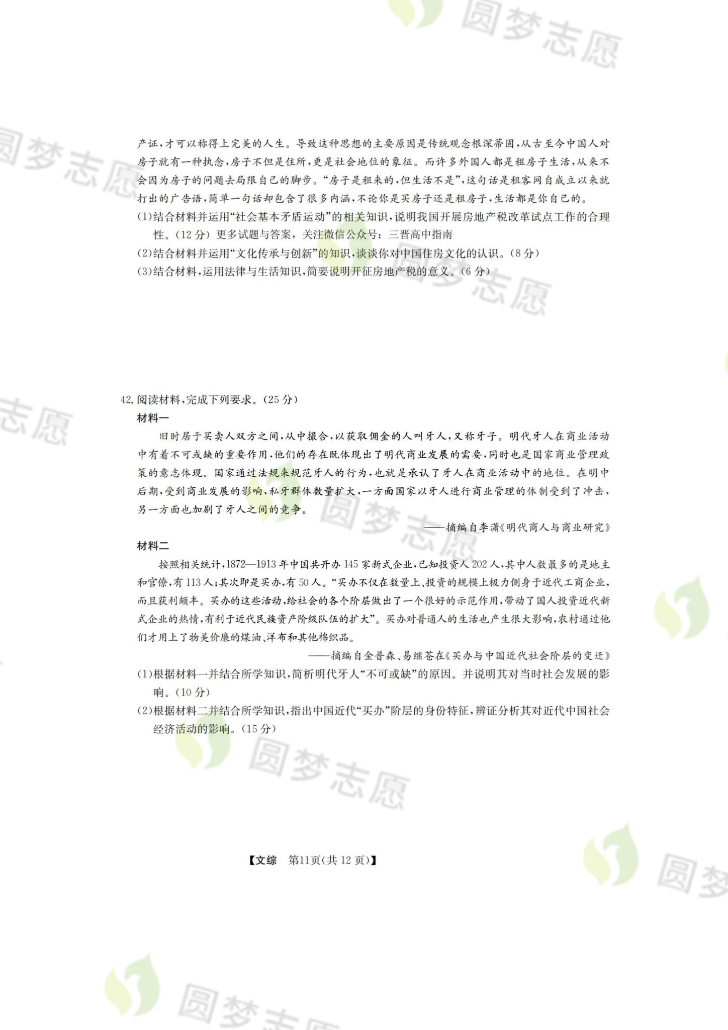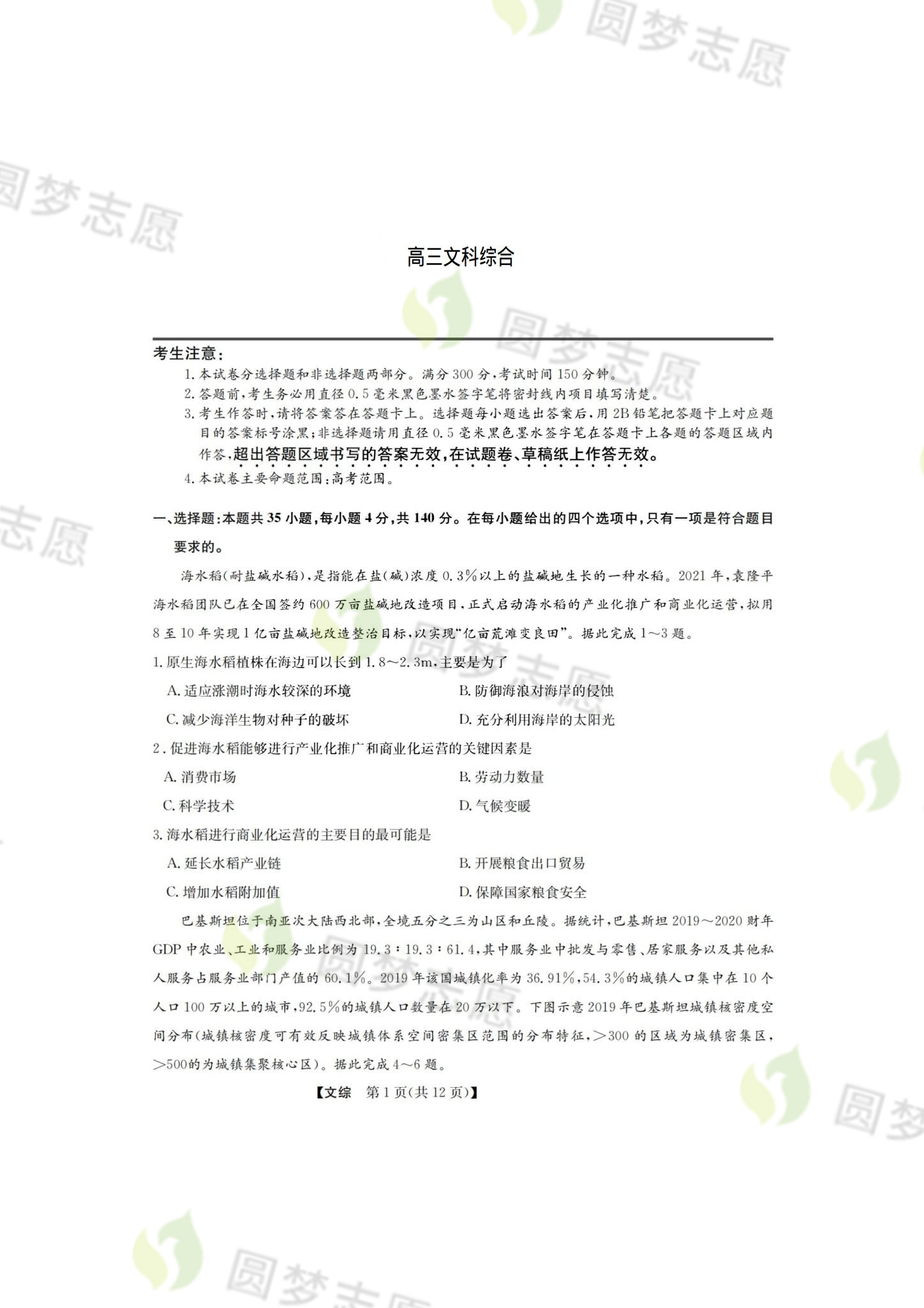 五、山西九师联盟2023高三1月第一次联考文科综合试题及答案