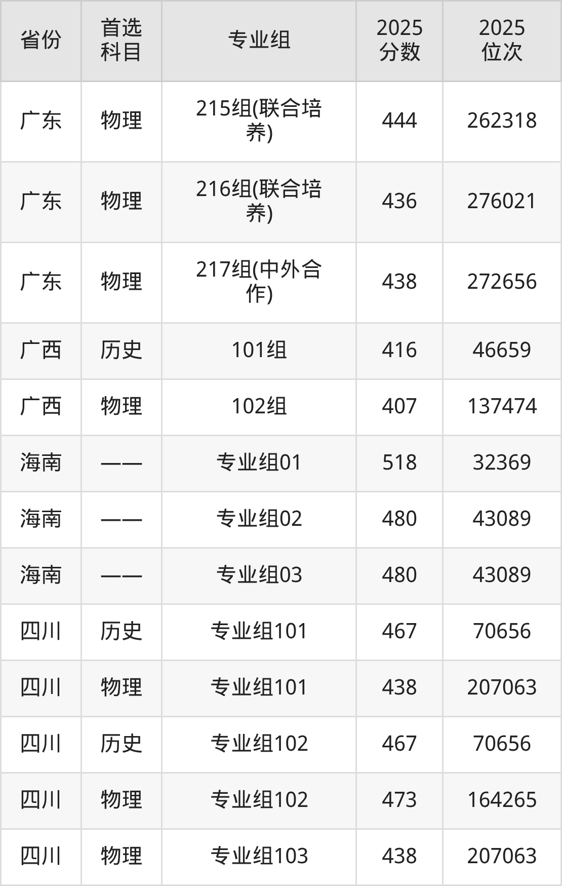 因为大部分地区目前只公布了院校(专业组)分数线,为了方便2026年考生参考,本文就整理出广州南方学院在全国各省不同科类的最低分: