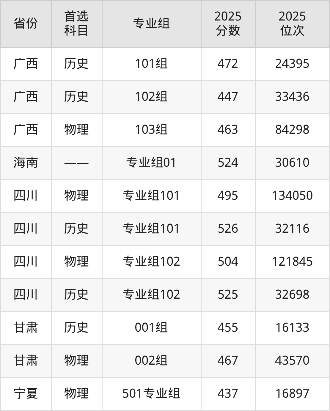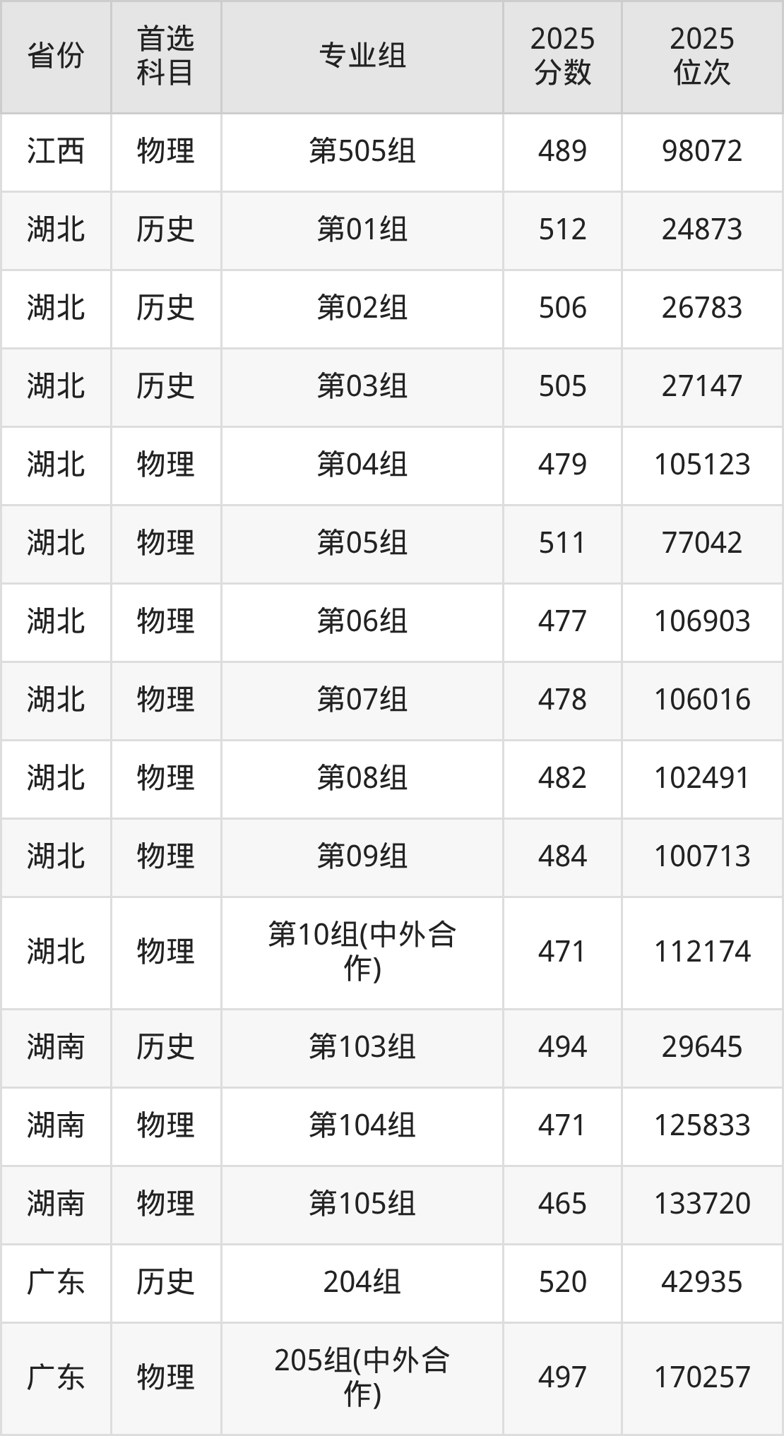 因为大部分地区目前只公布了院校(专业组)分数线,为了方便2026年考生参考,本文就整理出荆楚理工学院在全国各省不同科类的最低分: