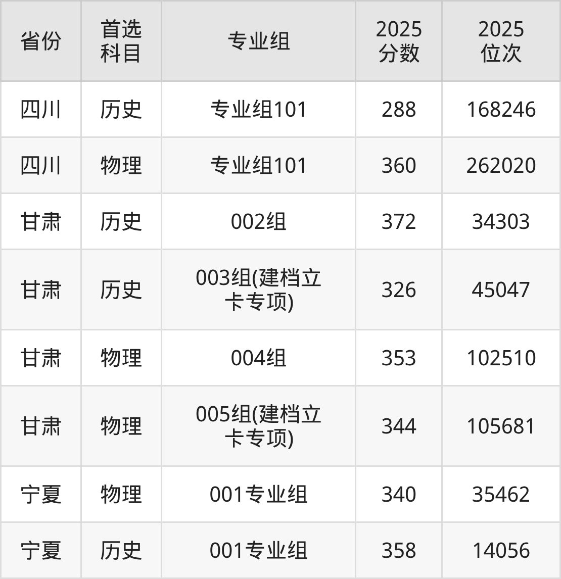 因为大部分地区目前只公布了院校(专业组)分数线,为了方便2026年考生参考,本文就整理出兰州职业技术学院在全国各省不同科类的最低分: