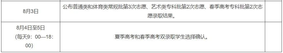文史、理工类特殊类型招生高职(专科)院校录取时间:8月10日-12日。