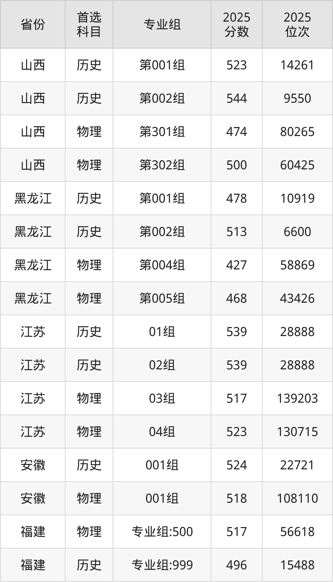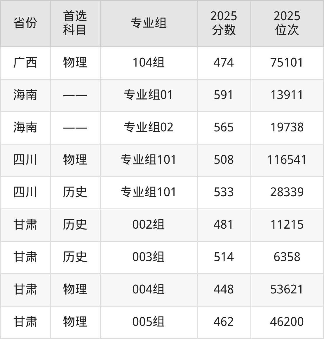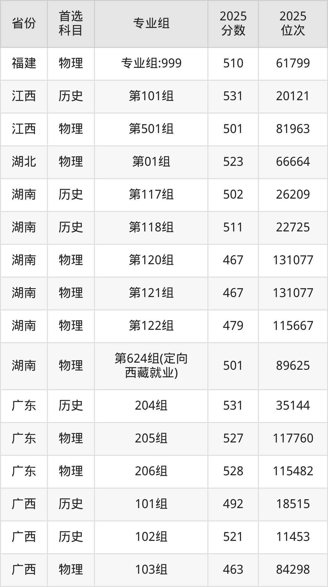 因为大部分地区目前只公布了院校(专业组)分数线,为了方便2026年考生参考,本文就整理出长沙师范学院在全国各省不同科类的最低分: