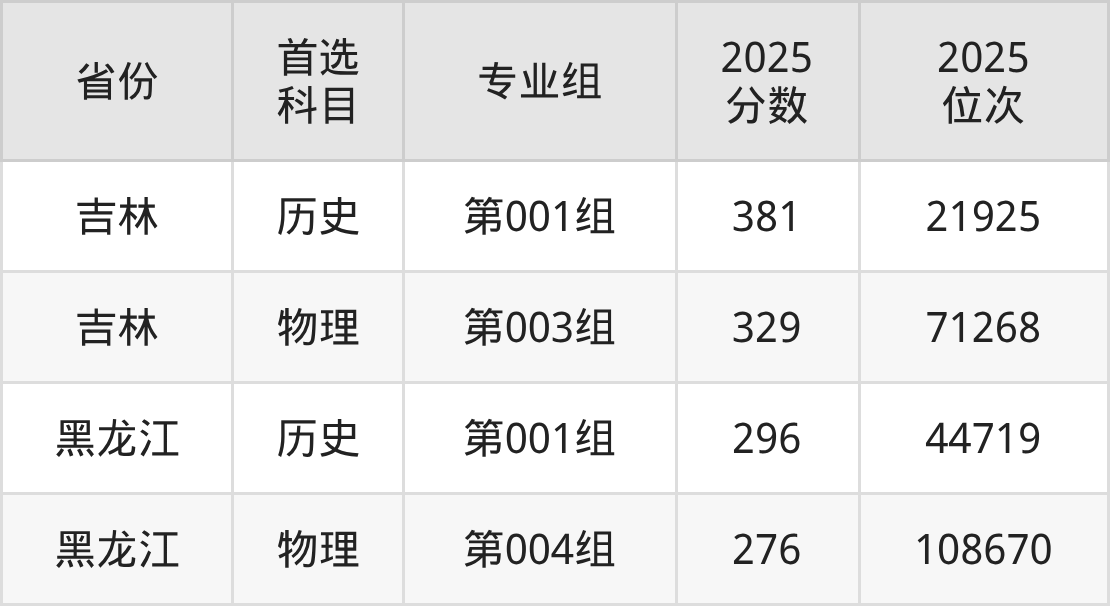 因为大部分地区目前只公布了院校(专业组)分数线,为了方便2026年考生参考,本文就整理出黑龙江冰雪体育职业学院在全国各省不同科类的最低分: