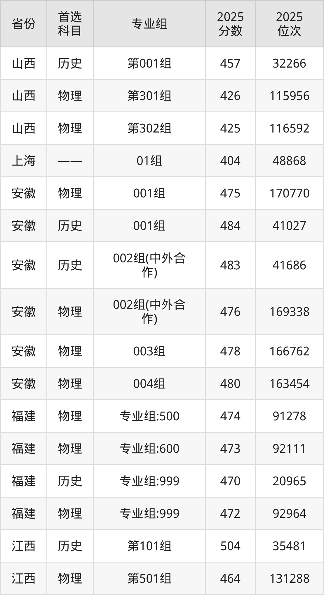 因为大部分地区目前只公布了院校(专业组)分数线,为了方便2026年考生参考,本文就整理出福建农林大学金山学院在全国各省不同科类的最低分: