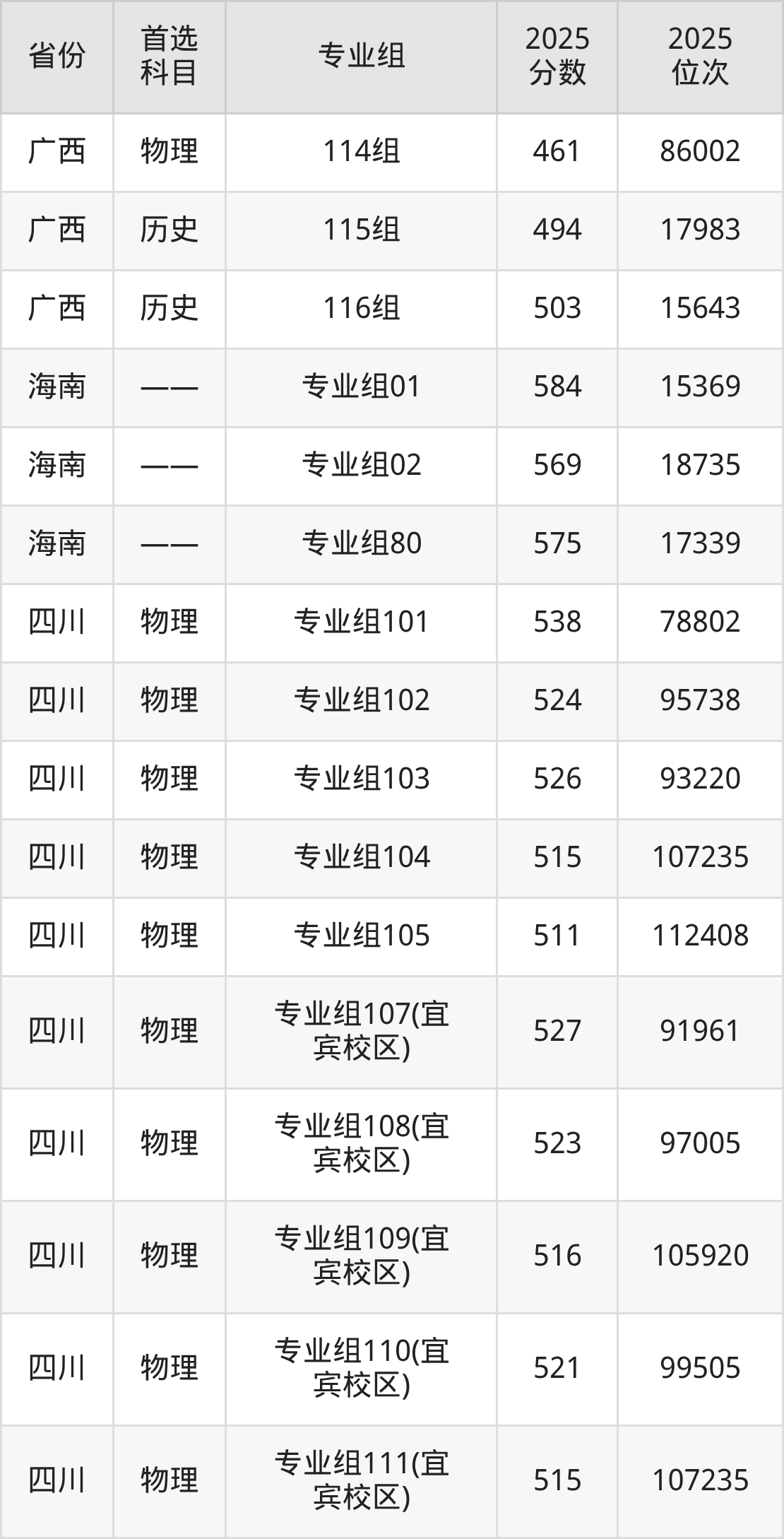 因为大部分地区目前只公布了院校(专业组)分数线,为了方便2026年考生参考,本文就整理出成都工业学院在全国各省不同科类的最低分: