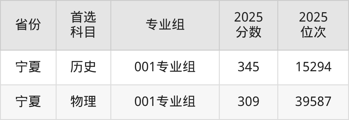 12.宁夏:物理类309分、39587位,历史类345分、15294位