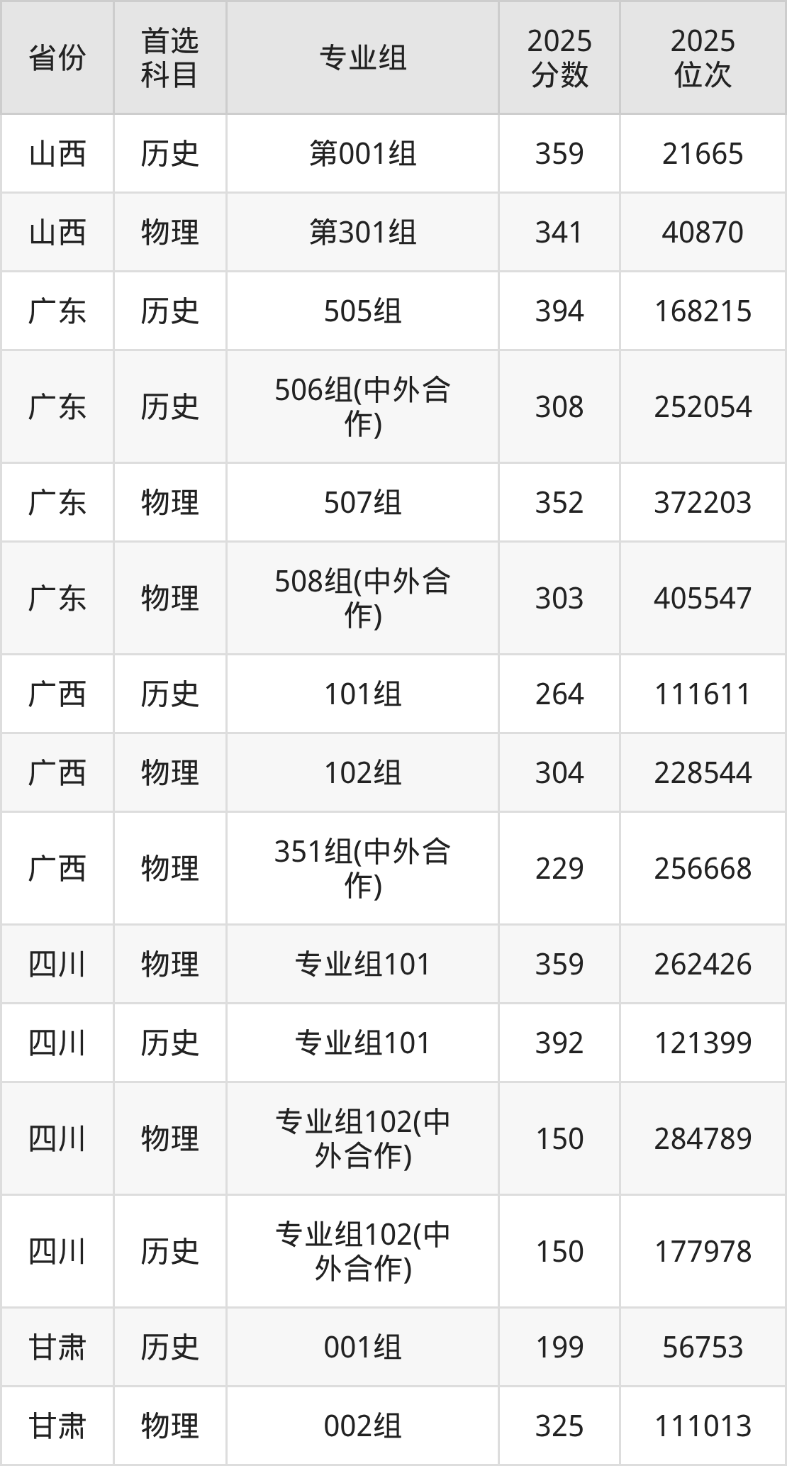 12.软件技术(中外合作办学):物理类359分、321658位,历史类347分、163955位