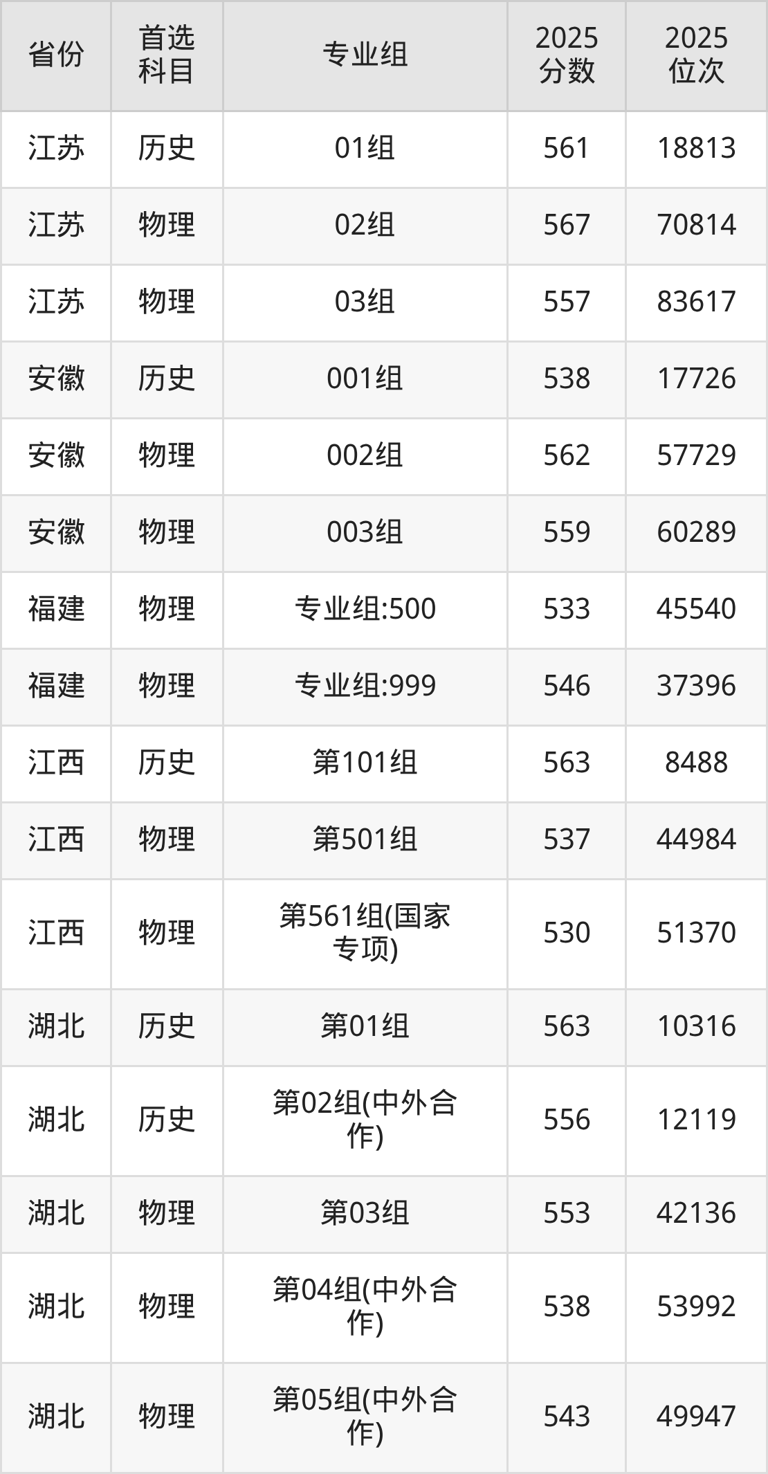 16.湖北:历史类556分、12119位,物理类538分、53992位