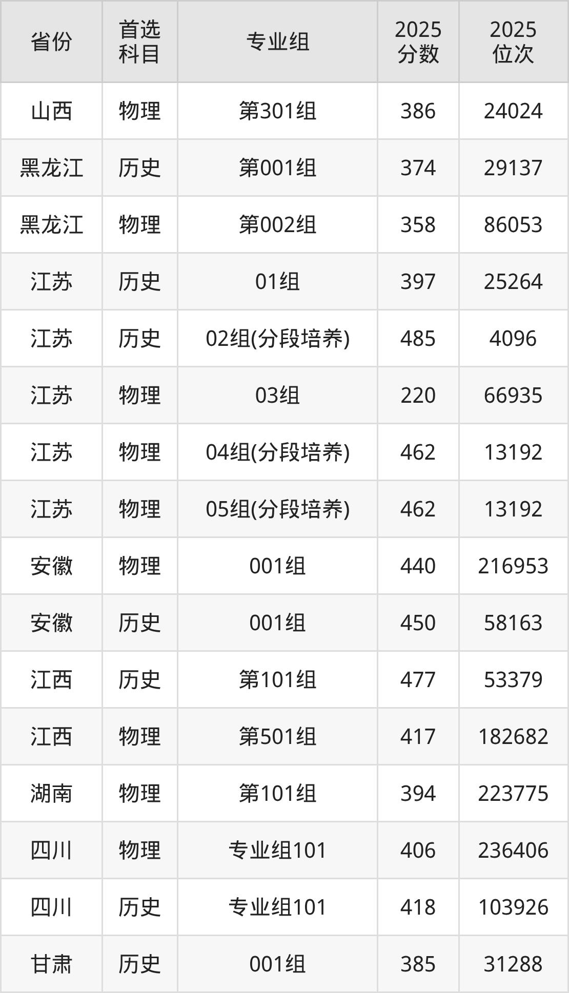 因为大部分地区目前只公布了院校(专业组)分数线,为了方便2026年考生参考,本文就整理出江苏工程职业技术学院在全国各省不同科类的最低分: